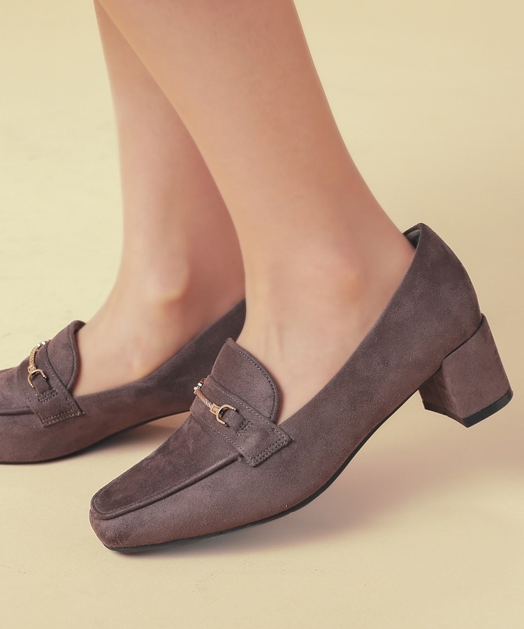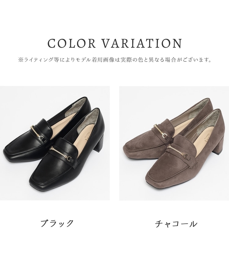 スクエアトゥの美しいフォルムながら、安定感のあるヒールで歩きやすさも抜群。