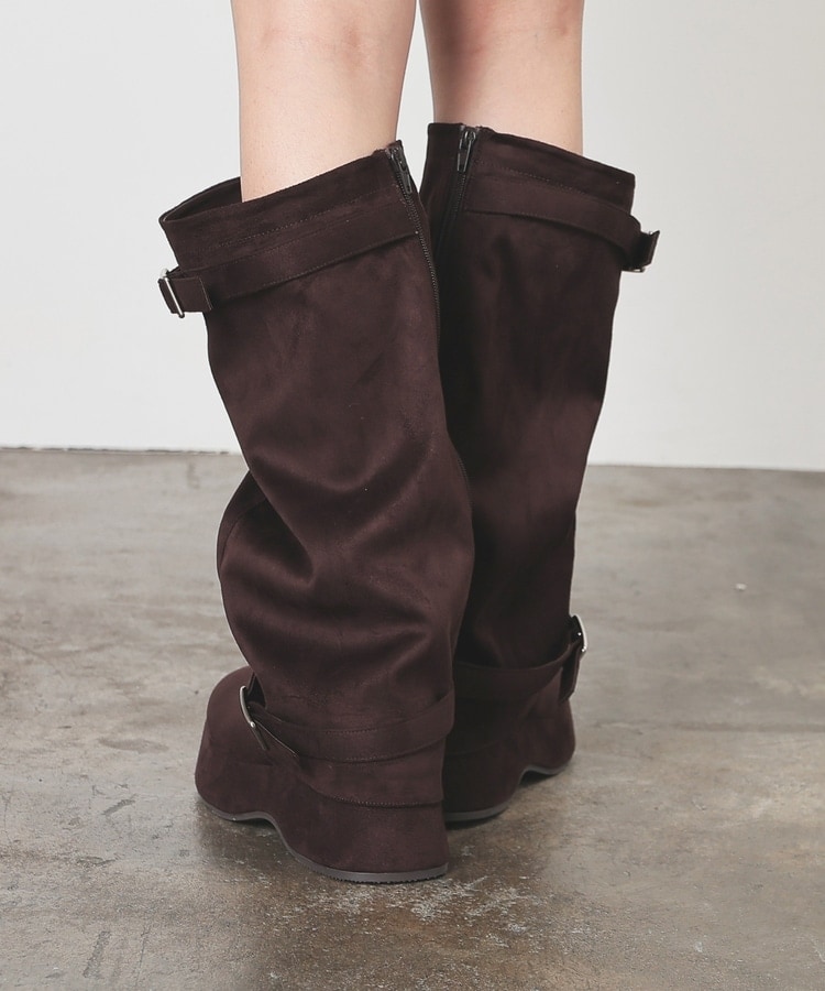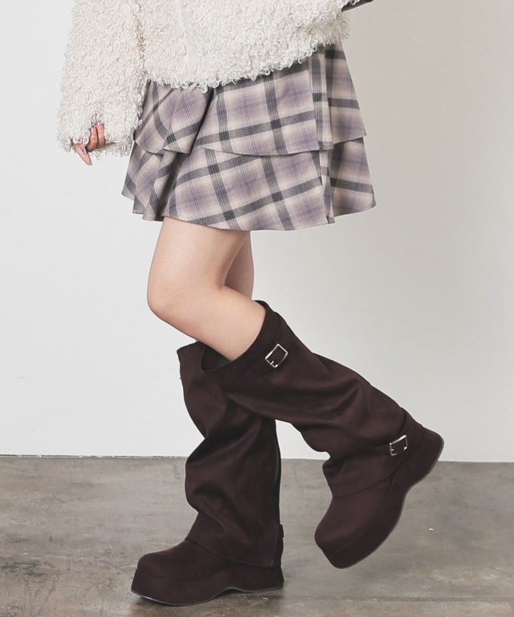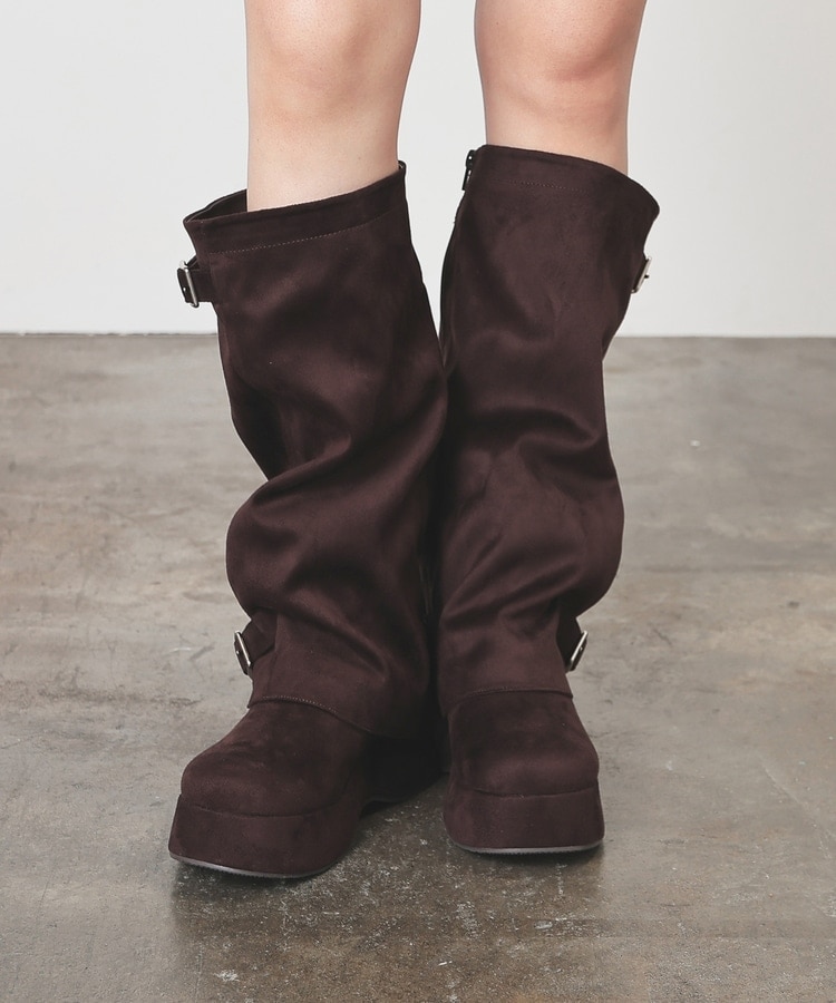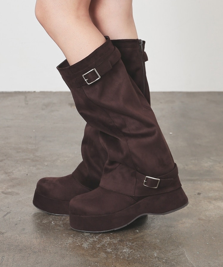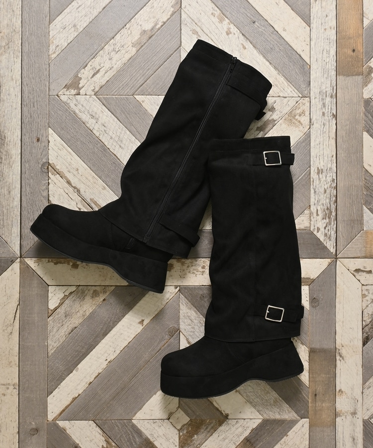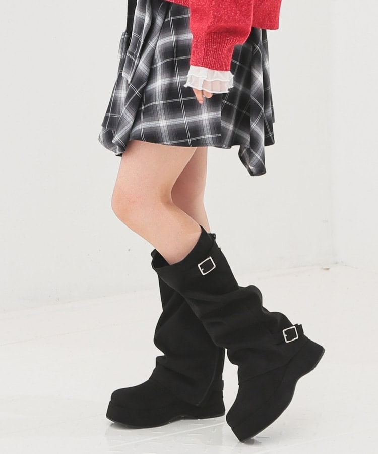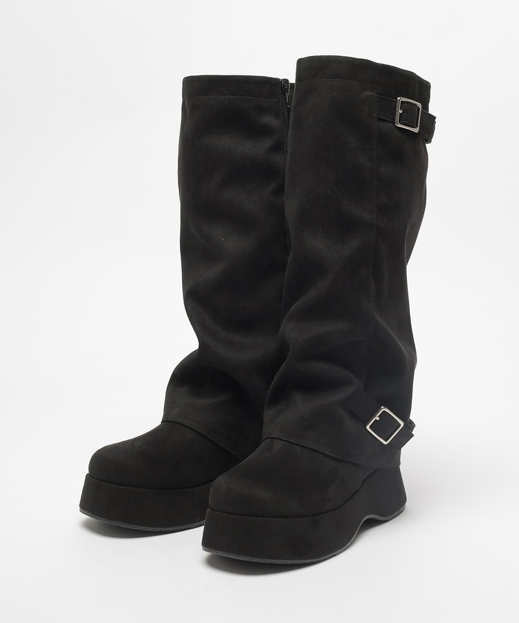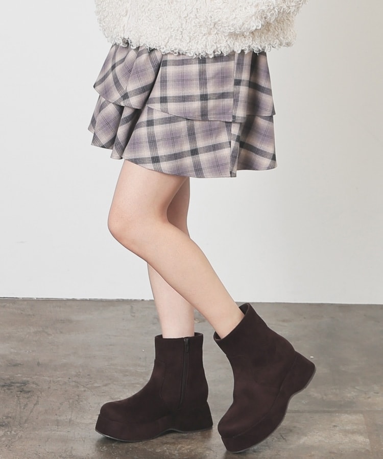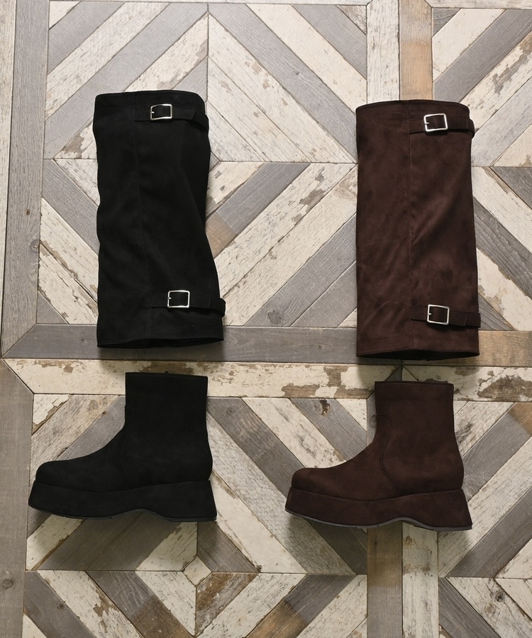 ボリューミーな足元を演出する厚底ソールで脚長効果抜群。