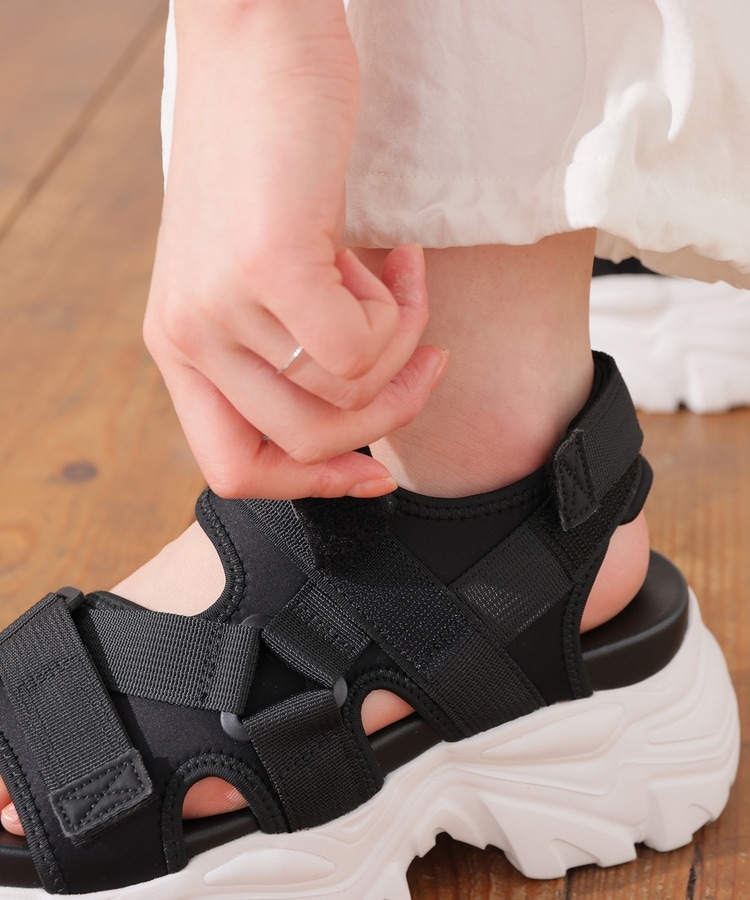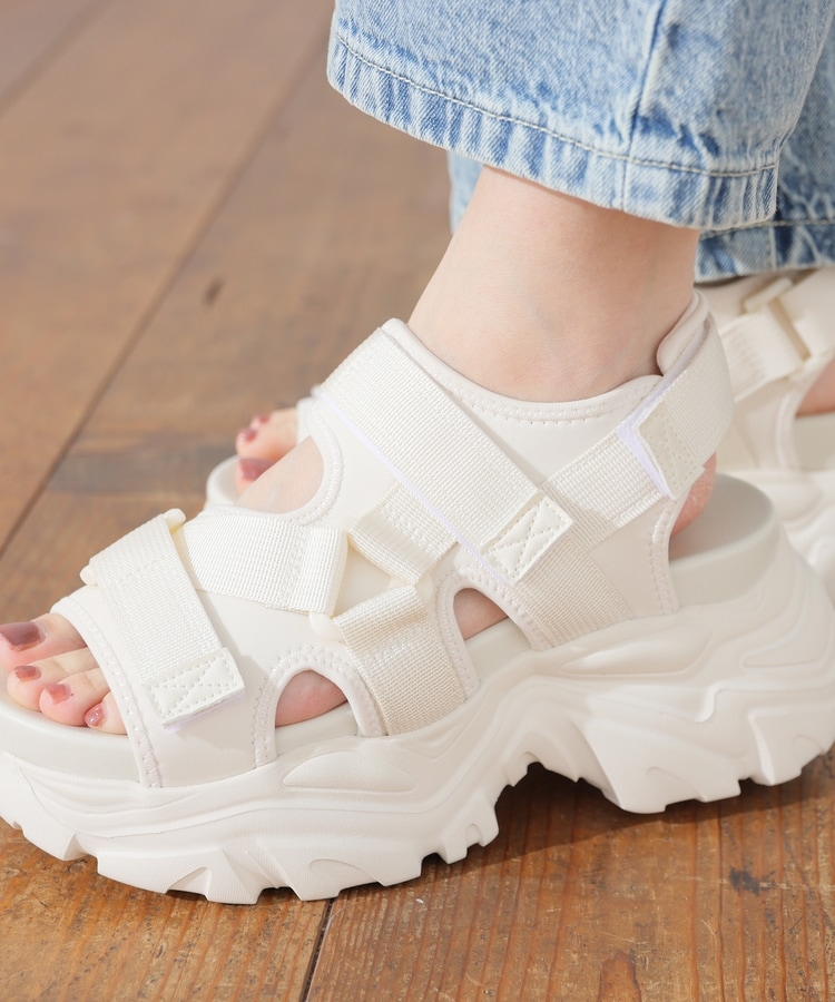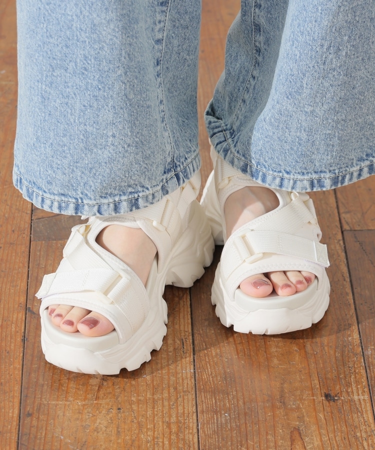 スタイルアップが叶う厚底のプラットフォームタイプ。