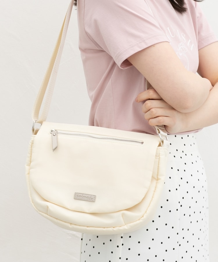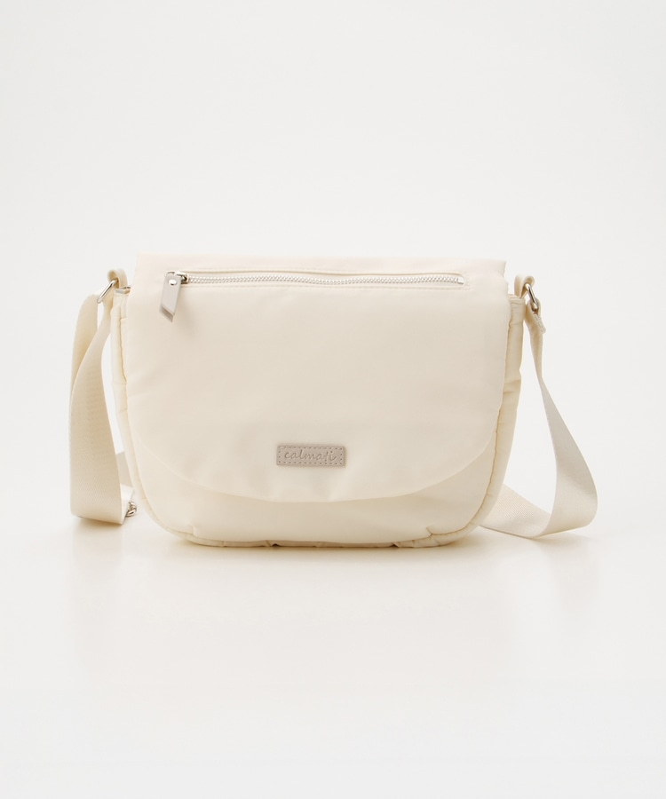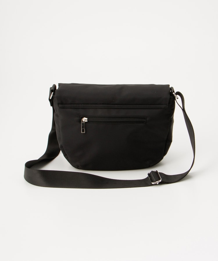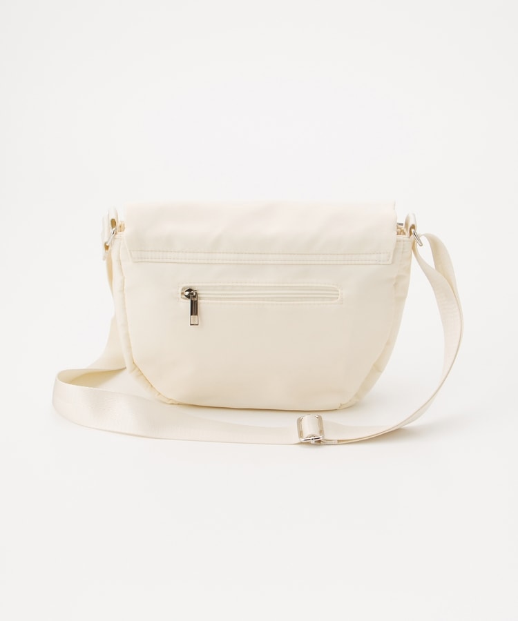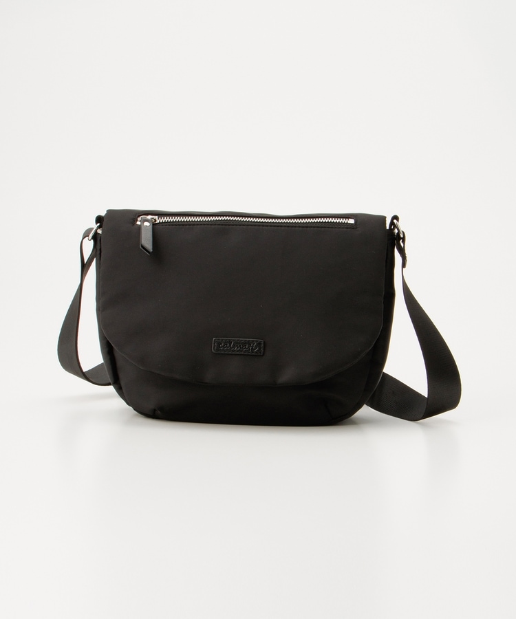 ファスナーポケットとプレート付きの、大きめフラップがアクセント。