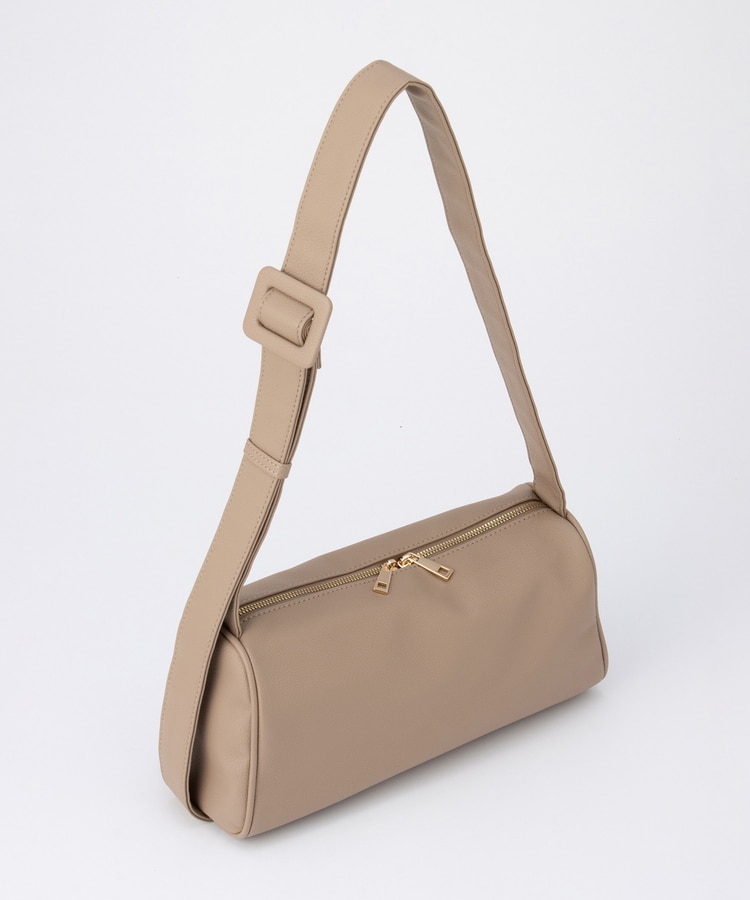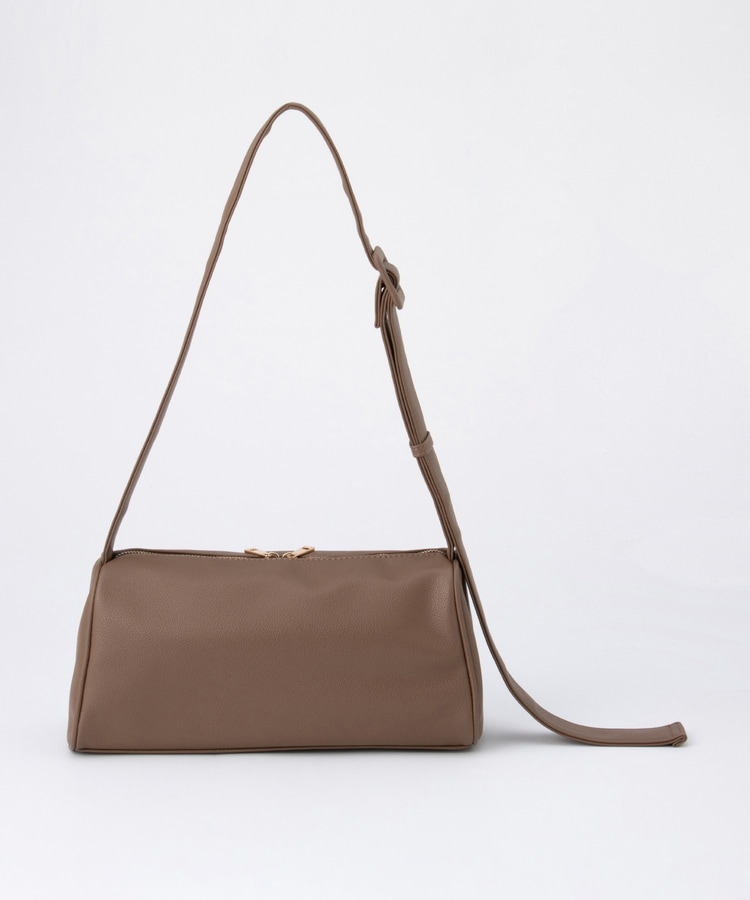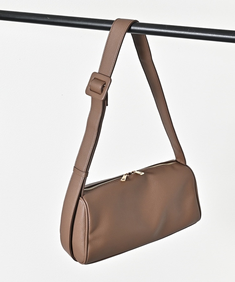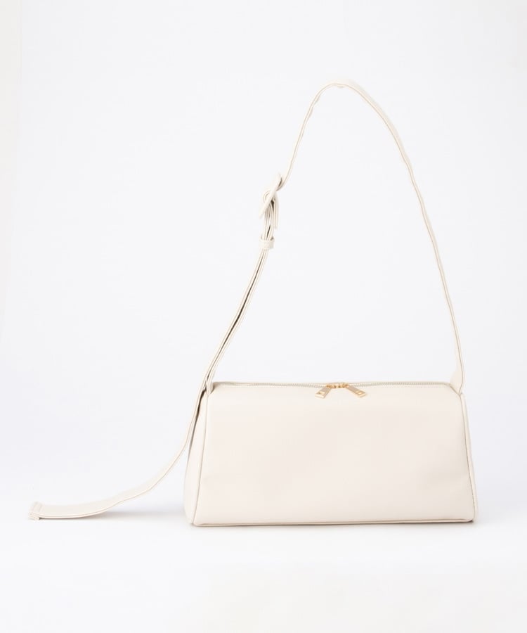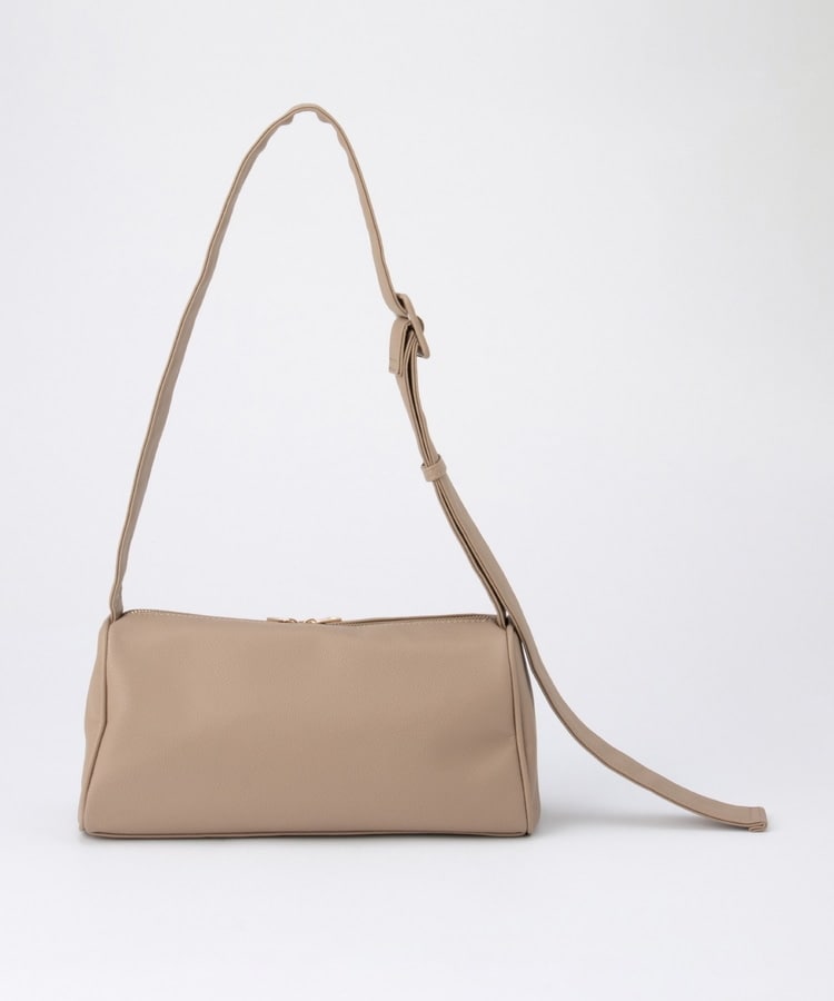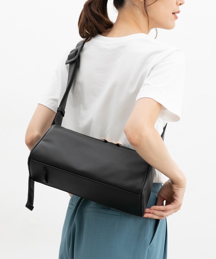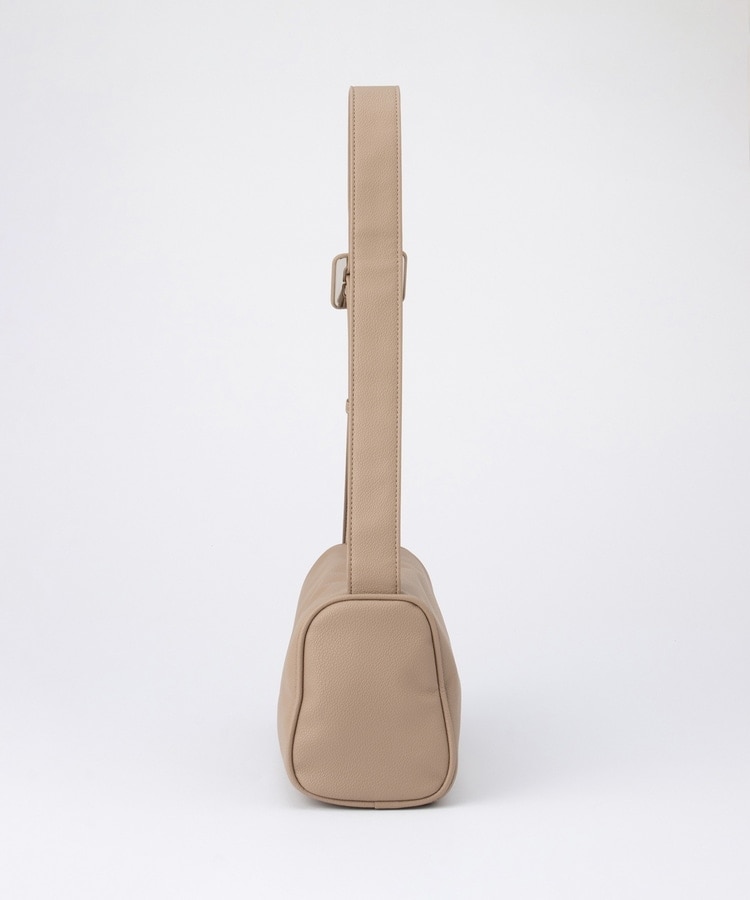 長さ調整可能なショルダーは、縮めたときに端を底面のループに通してすっきり収納可能。