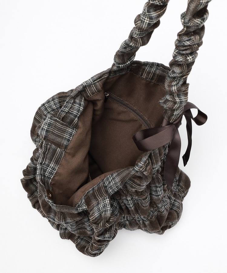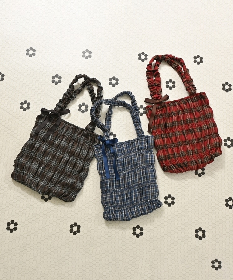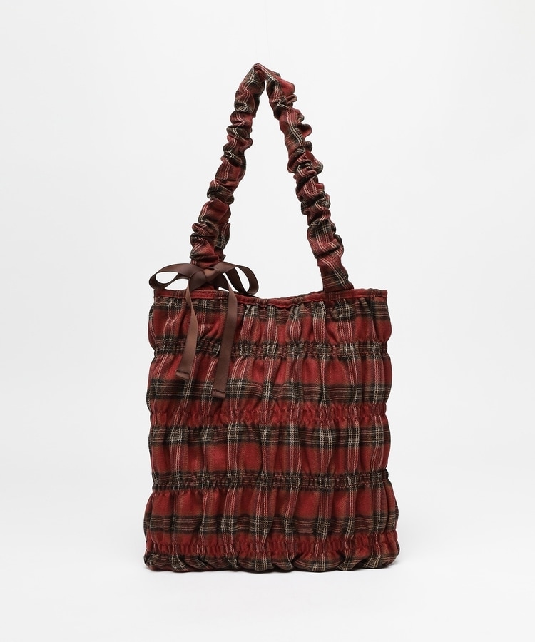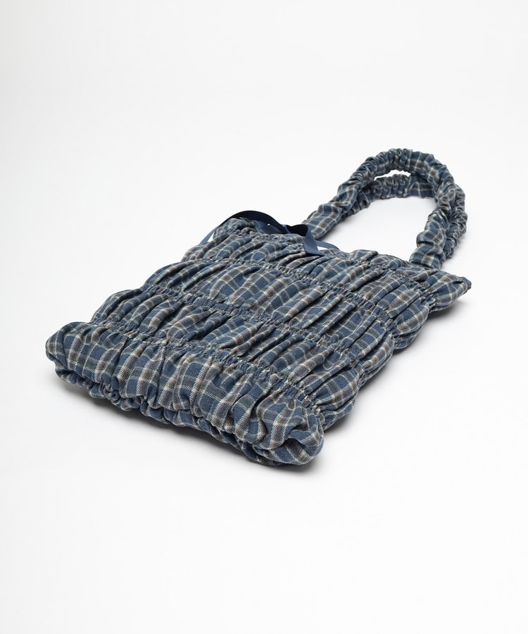 チェック柄ギャザートート