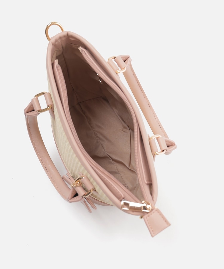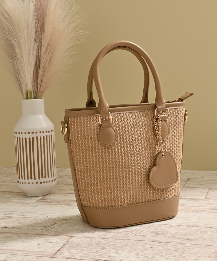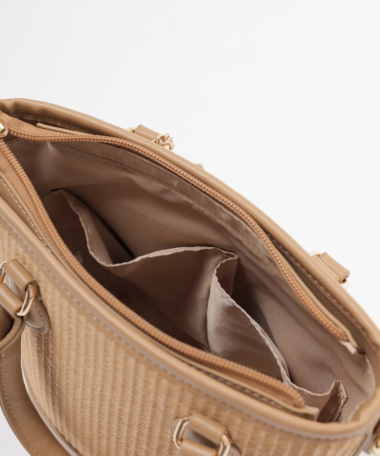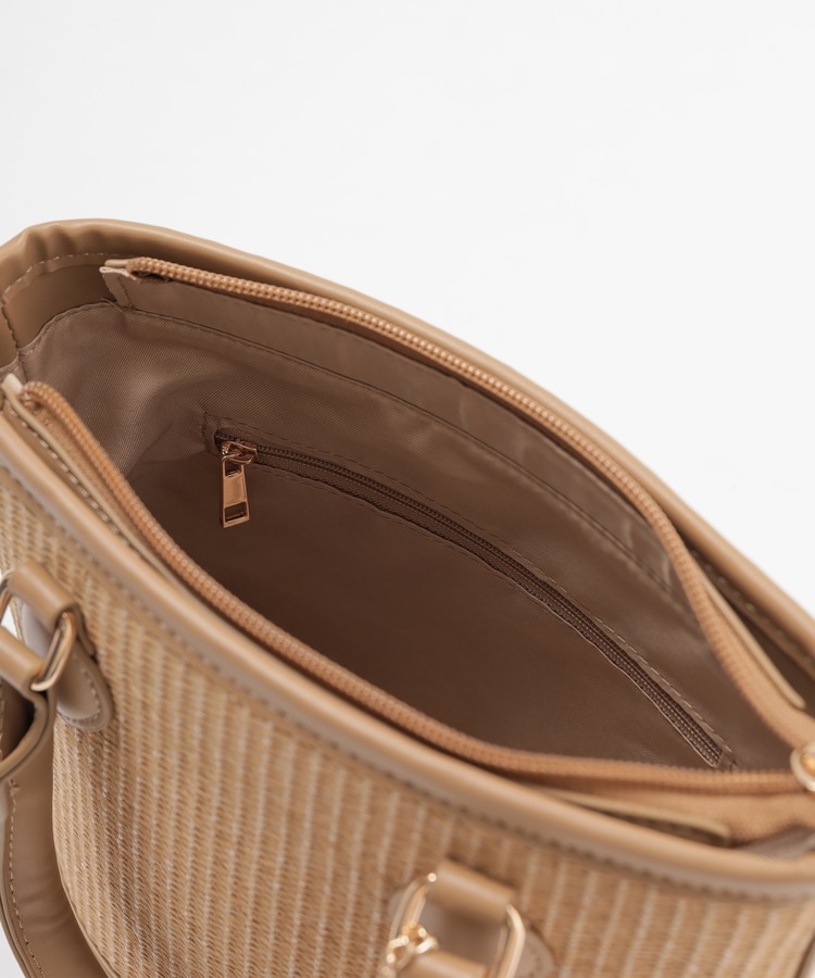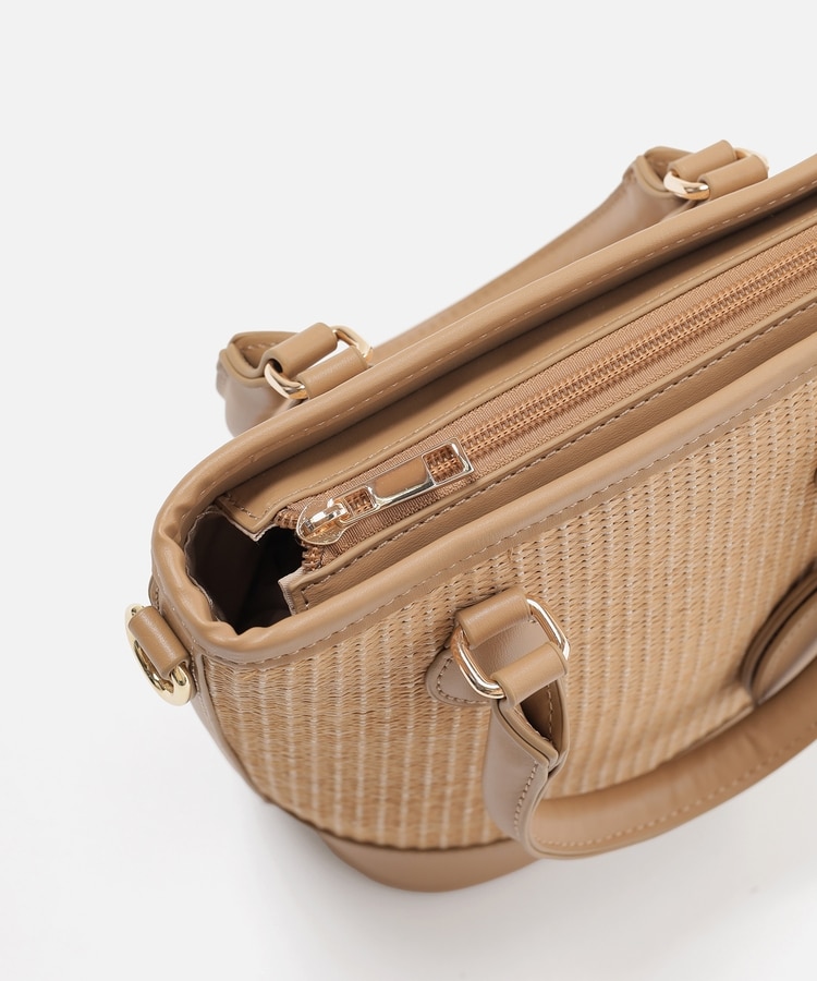 ナチュラルな風合いの雑材と上品なフェイクレザー素材。