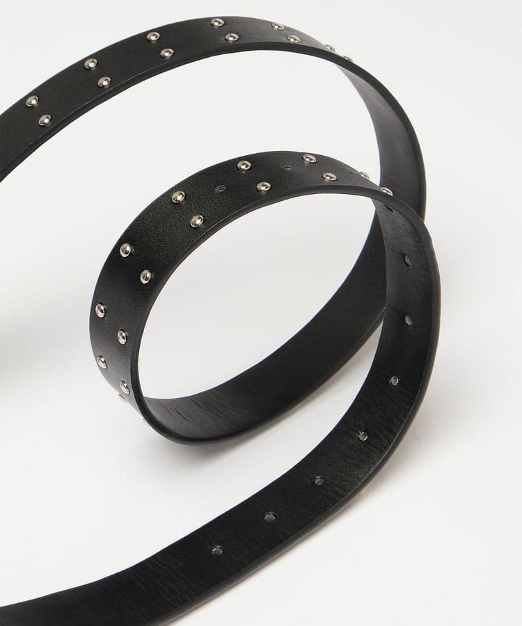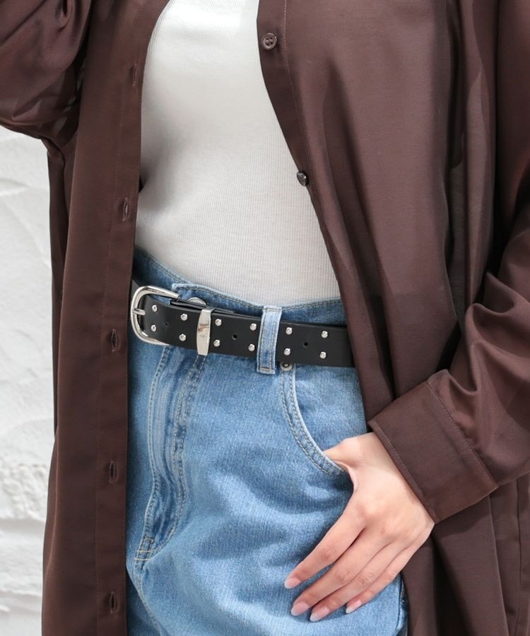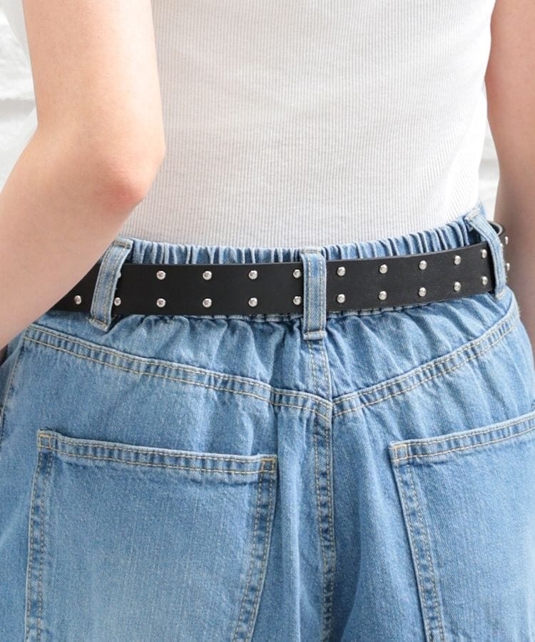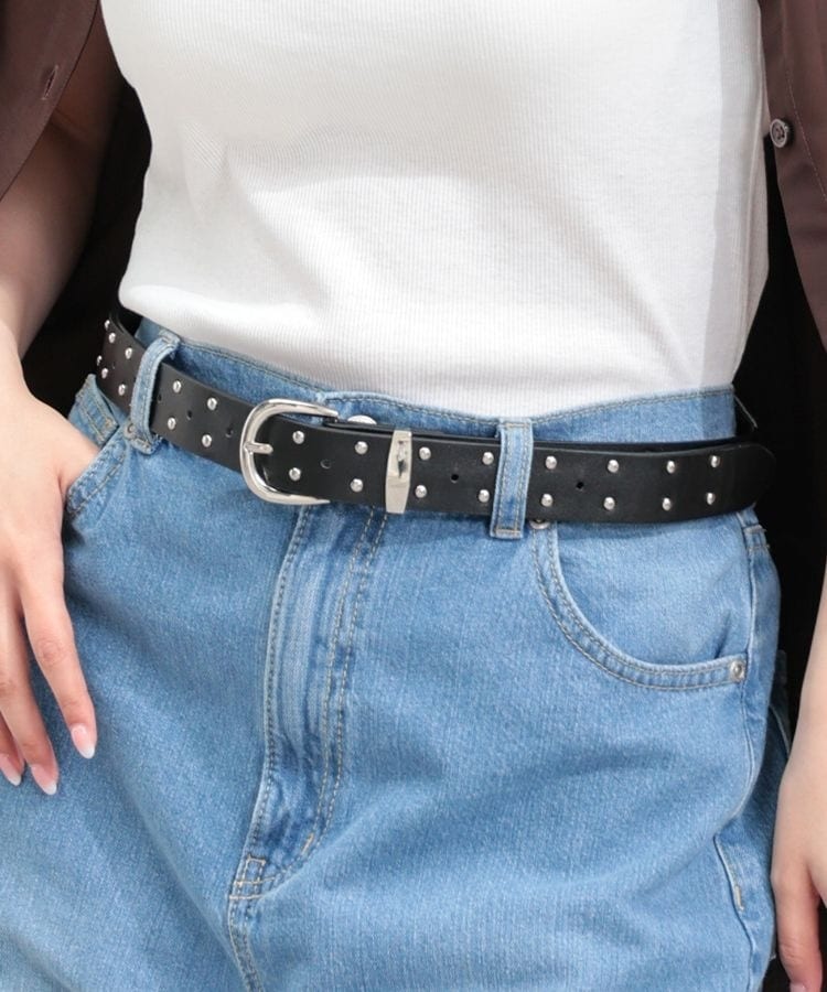 シンプルな丸スタッズで縁どりしたモードなデザイン。