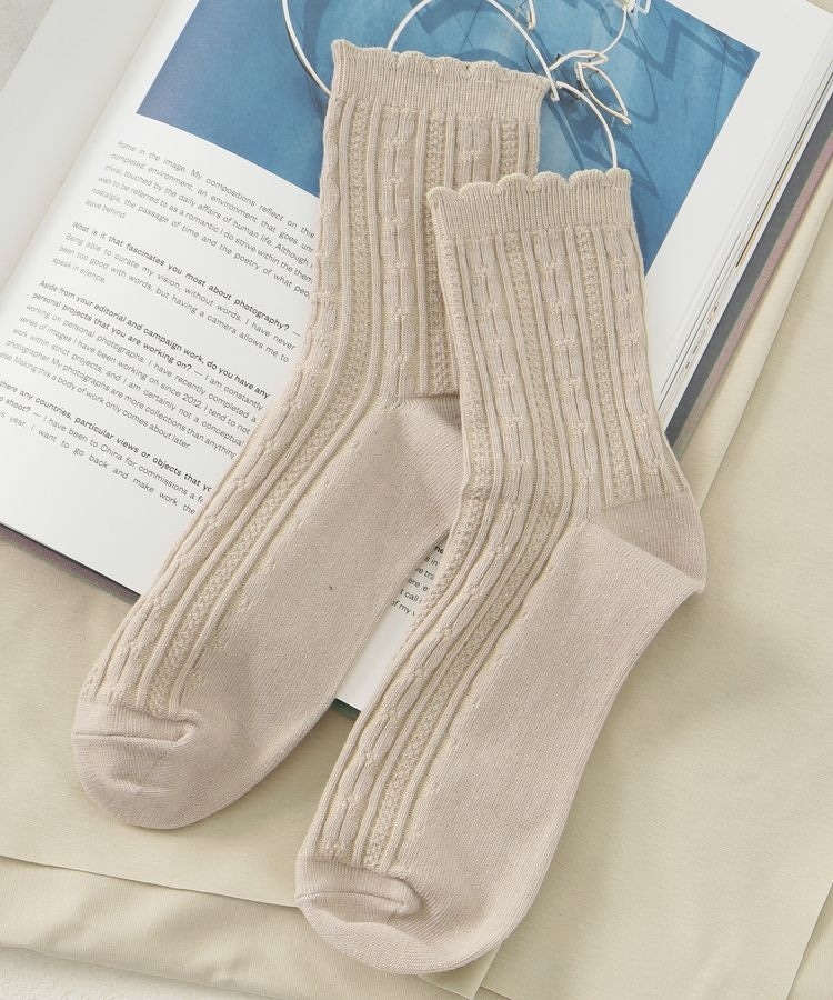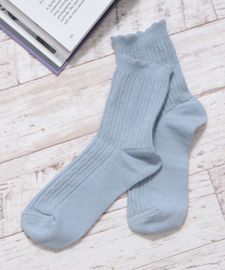 ケーブルの編み柄がナチュラル可愛いソックス。