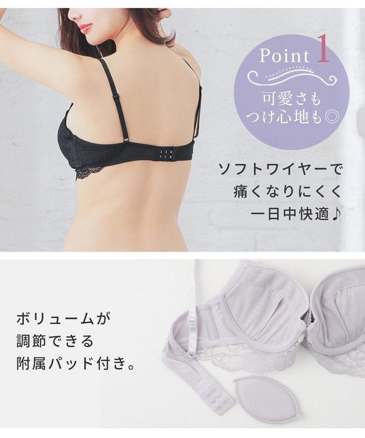ソフトワイヤーでアンダーが痛くなりにくく、快適な着け心地◎