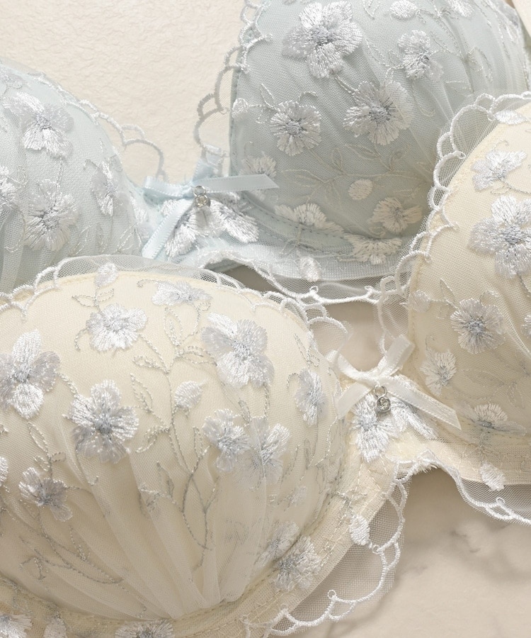 ラメ入りの花柄刺繍がフェミニンなブラセット。