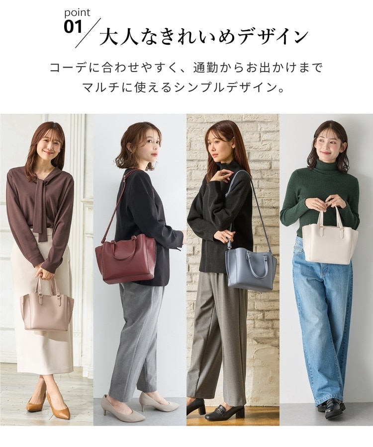 通勤からお出かけまでマルチに使えるシンプルデザイン。