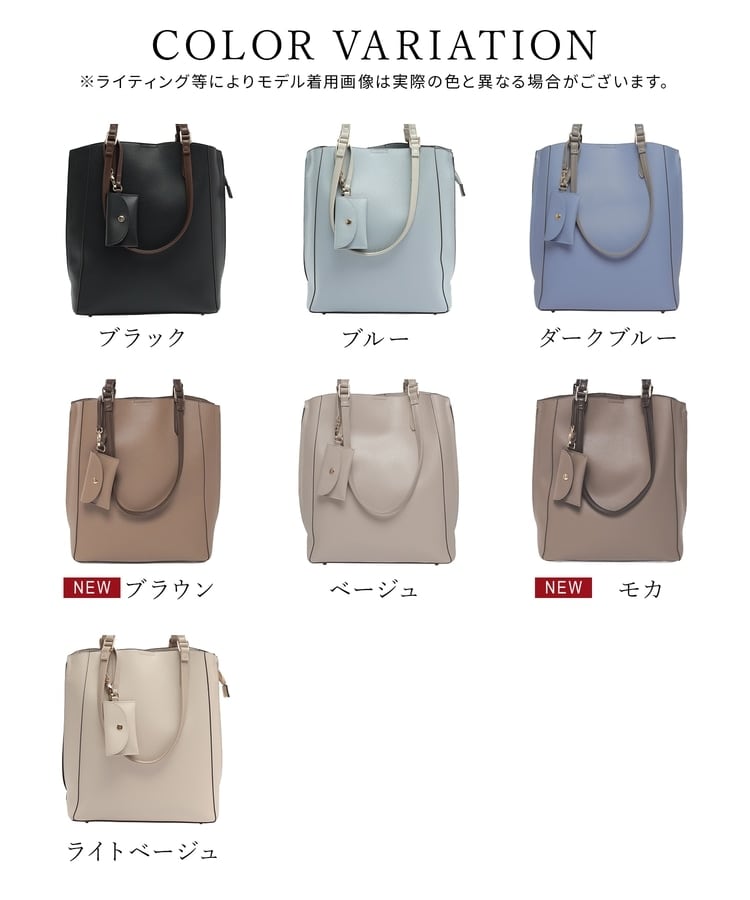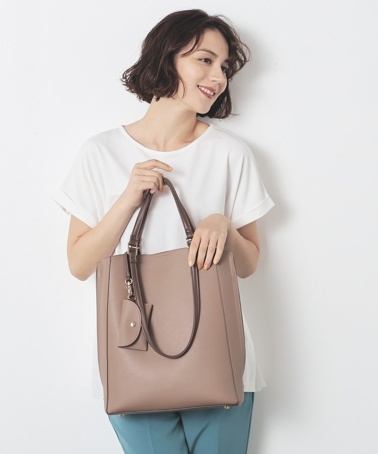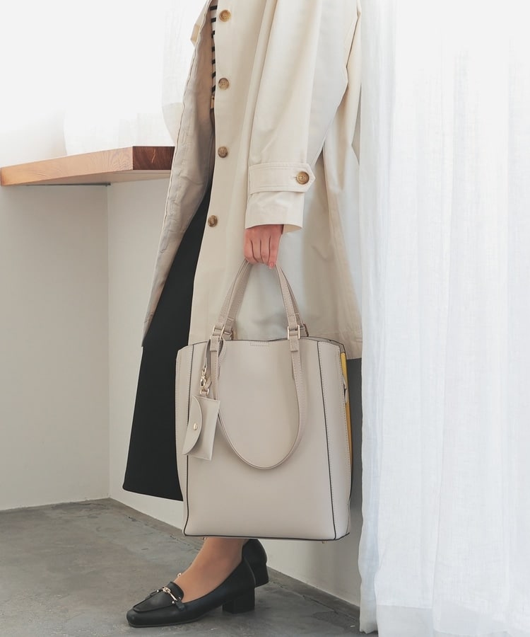 長さの異なる持ち手付きで肩掛けにもなる2Way仕様。