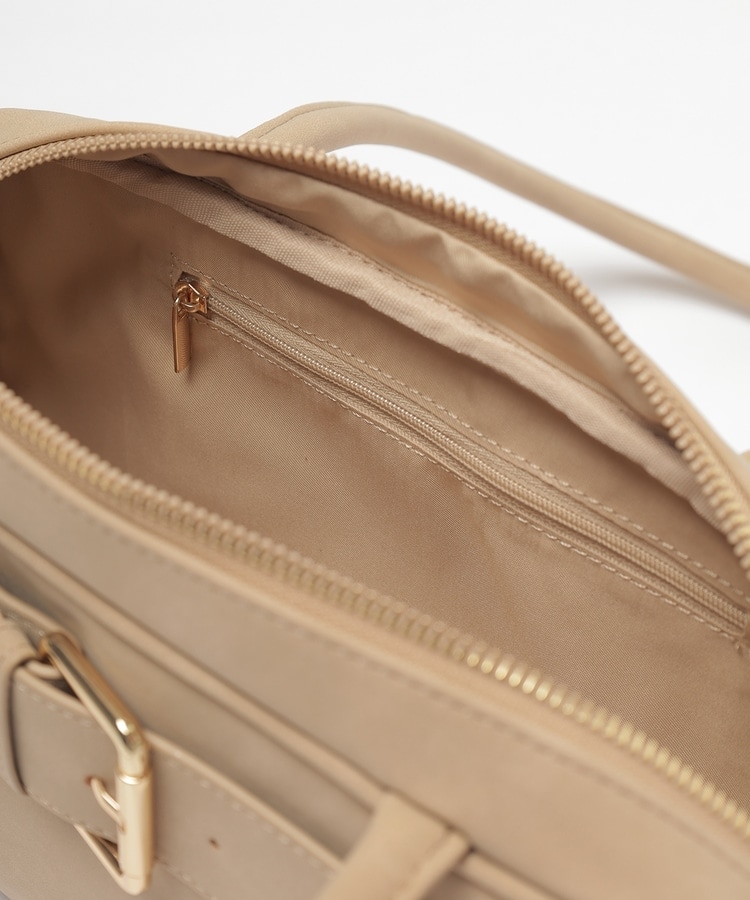 長めの持ち手で肩に掛けやすく、バックハンドルバインダー付きでズレ落ちも防止。