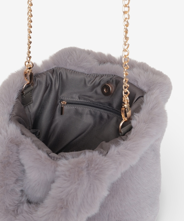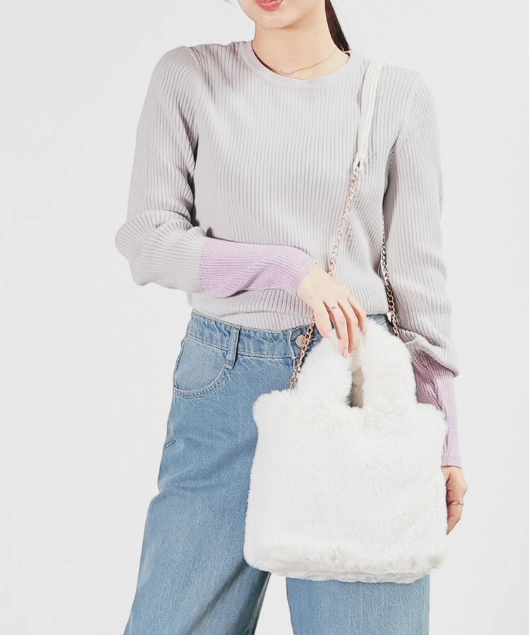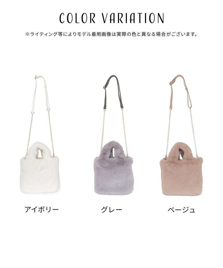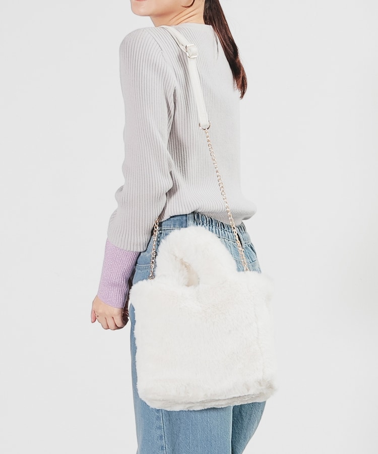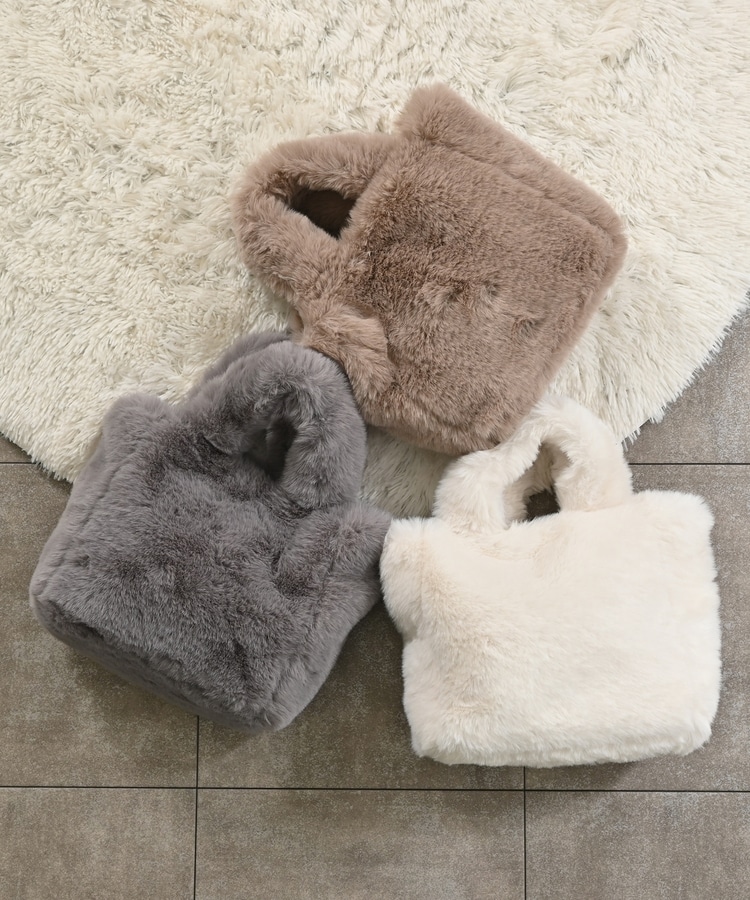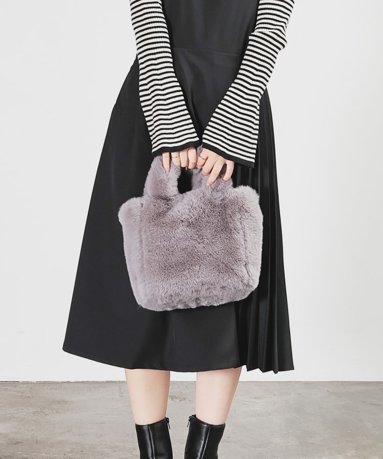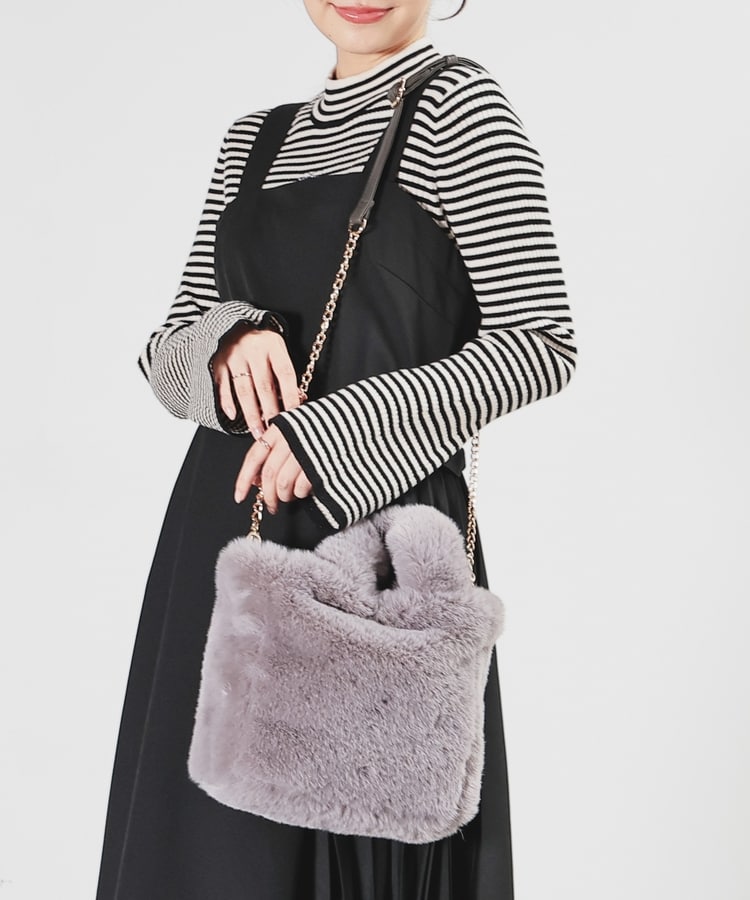 秋冬ムード漂う、手触りのよいフェイクファー素材。