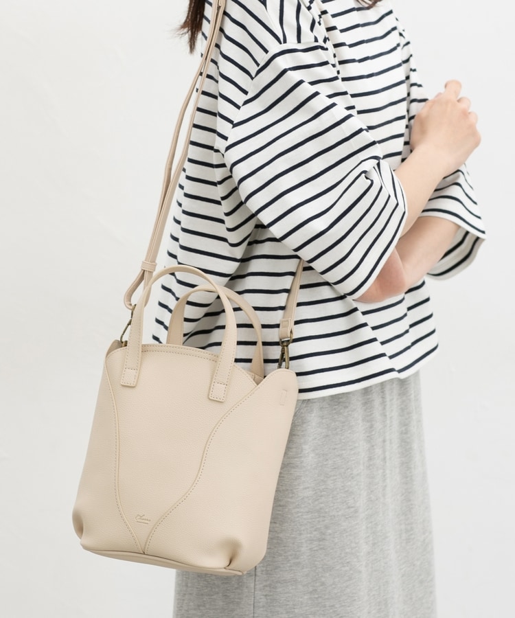 肩掛けもできる取り外し可能なショルダー付き。ショルダーの付け根は内側設計で外観すっきり。