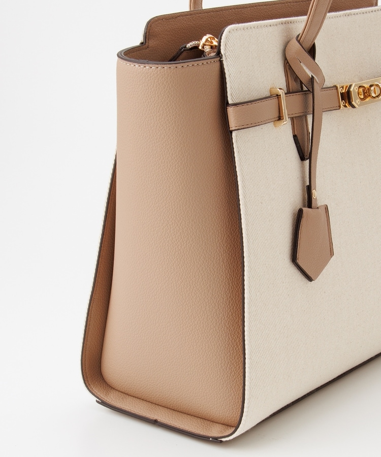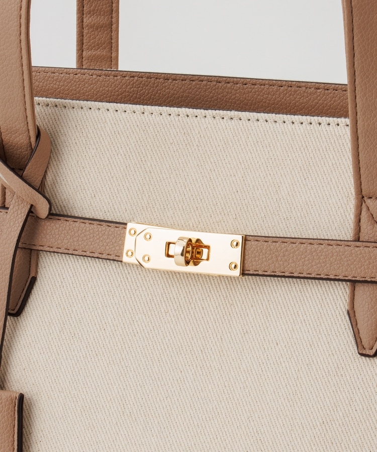 キャンバス生地とフェイクレザーのコンビネーションデザイン。