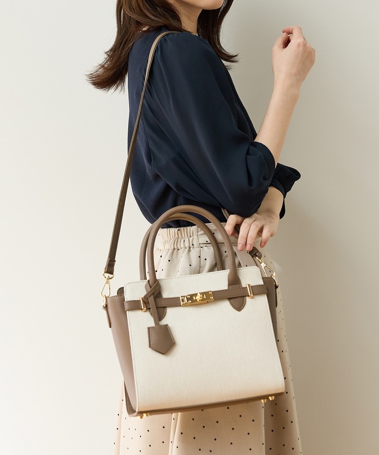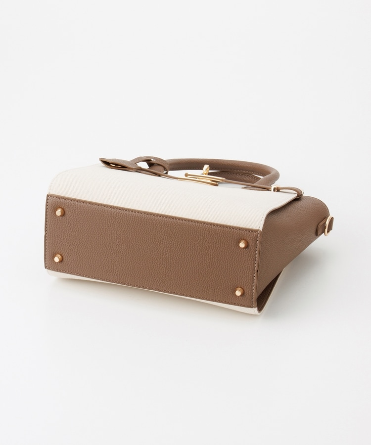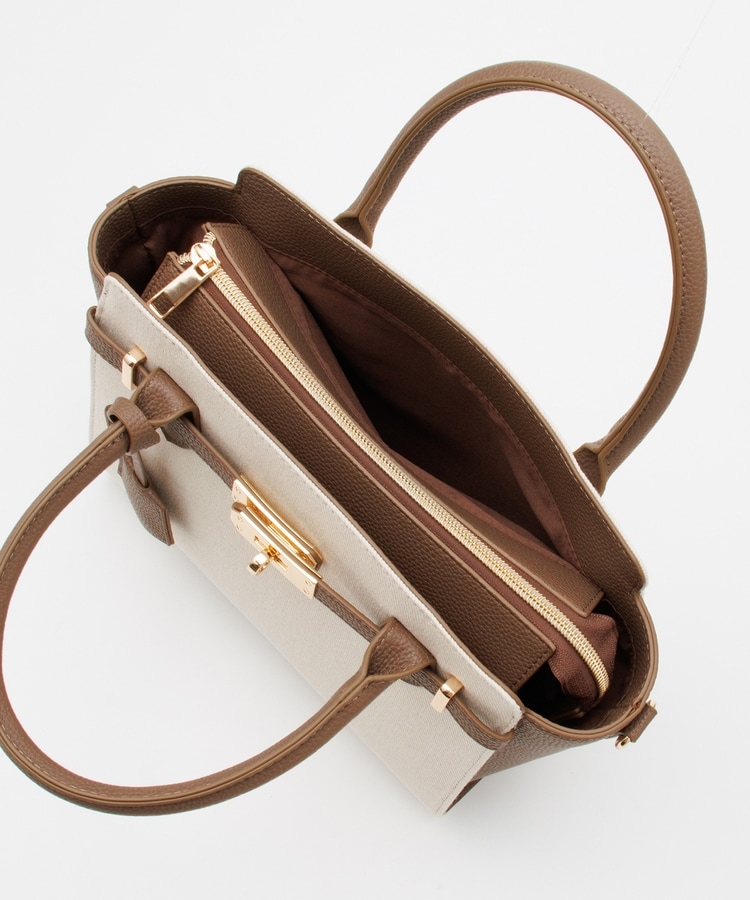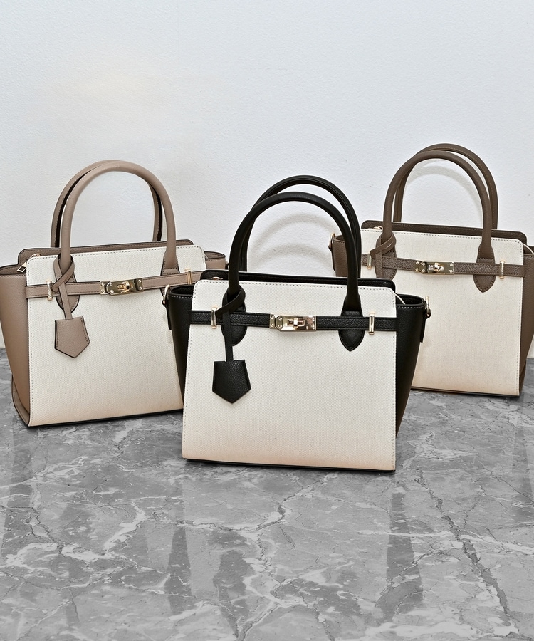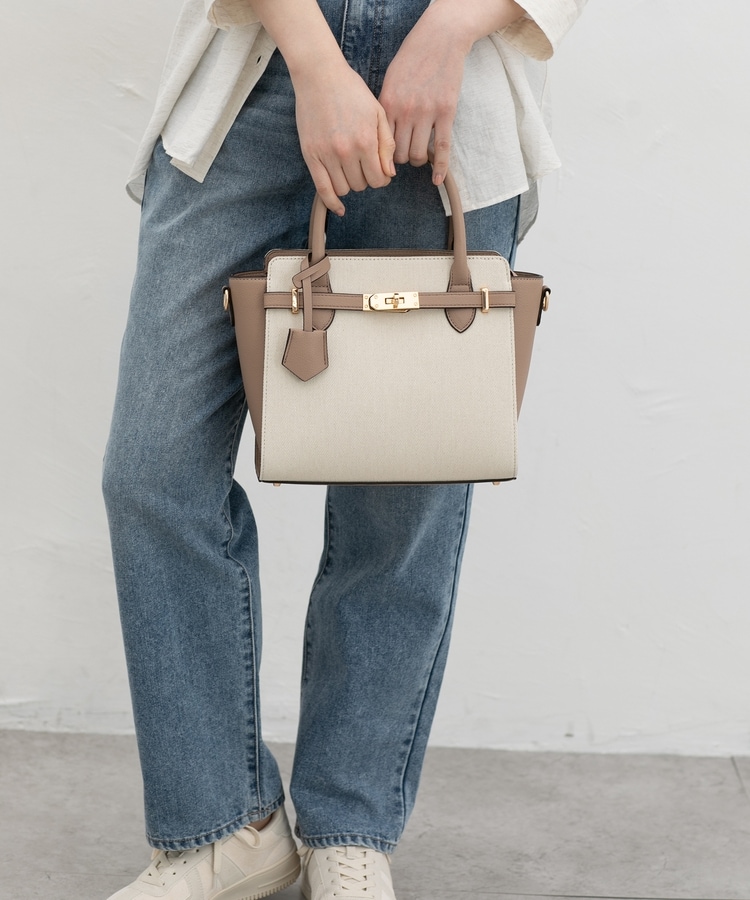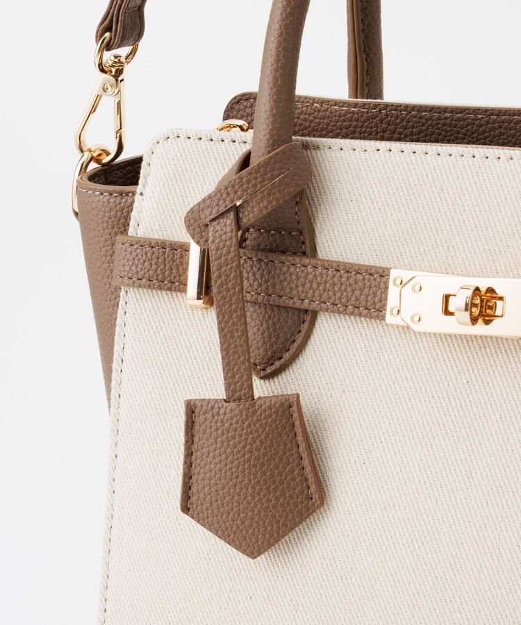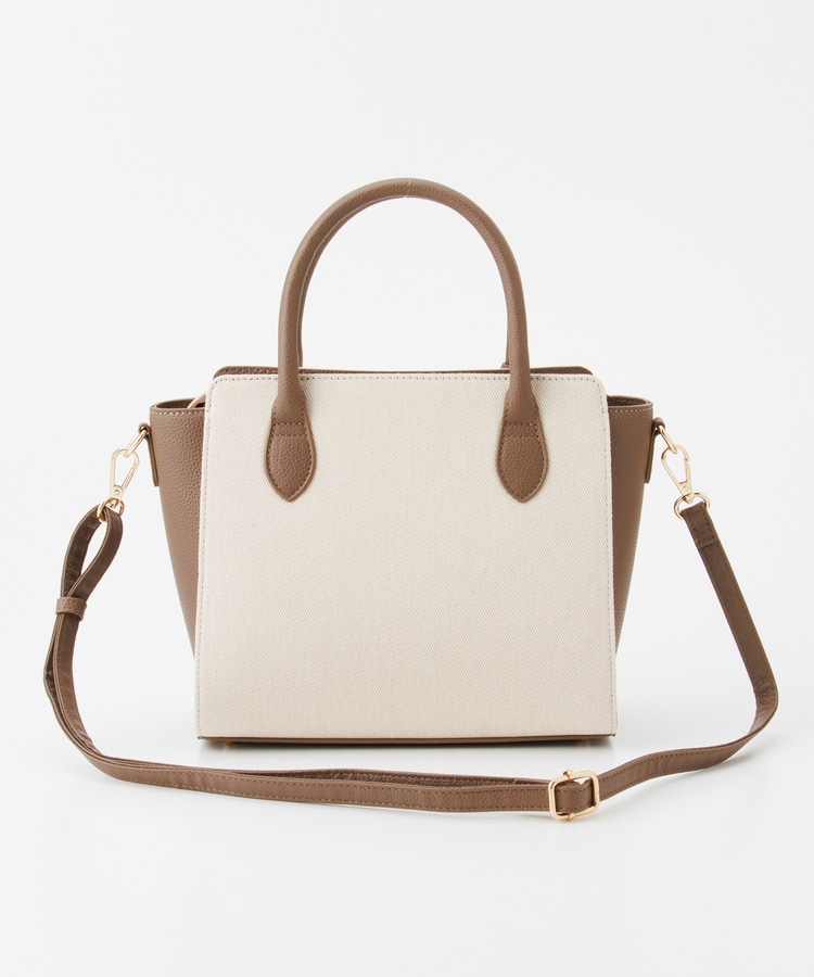 キャンバス生地とフェイクレザーのコンビネーションデザイン。