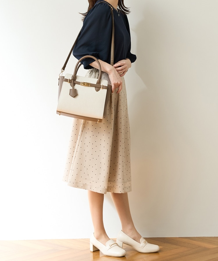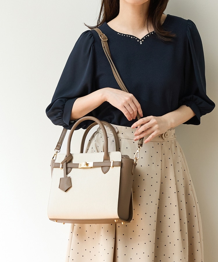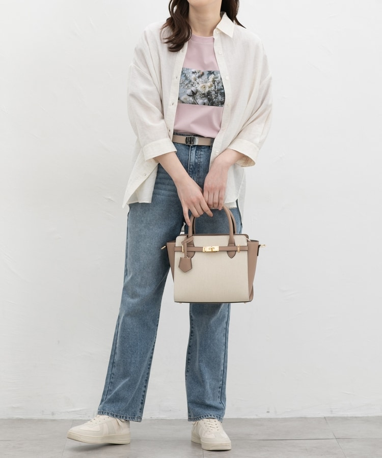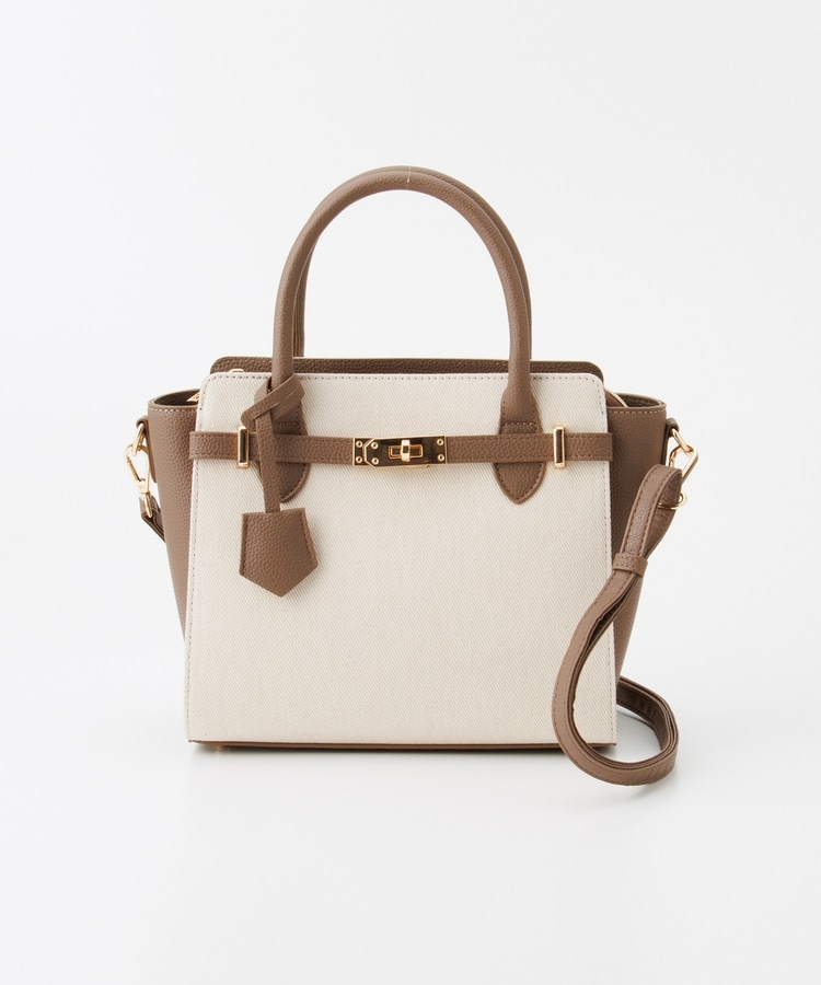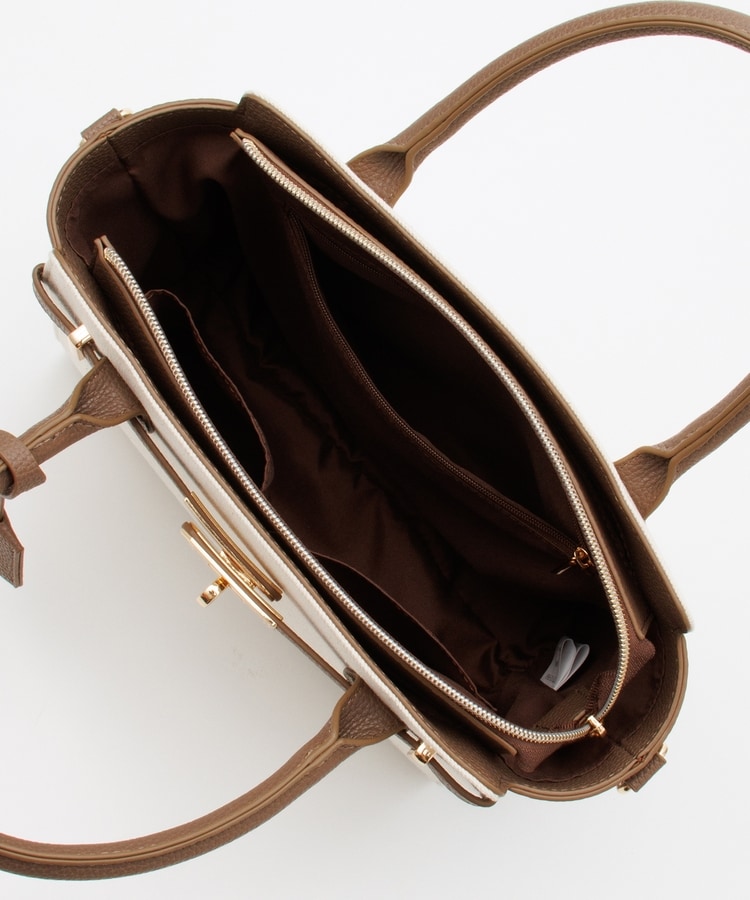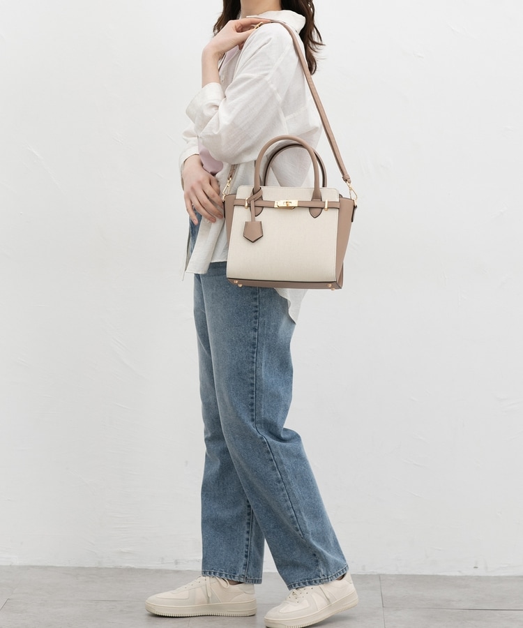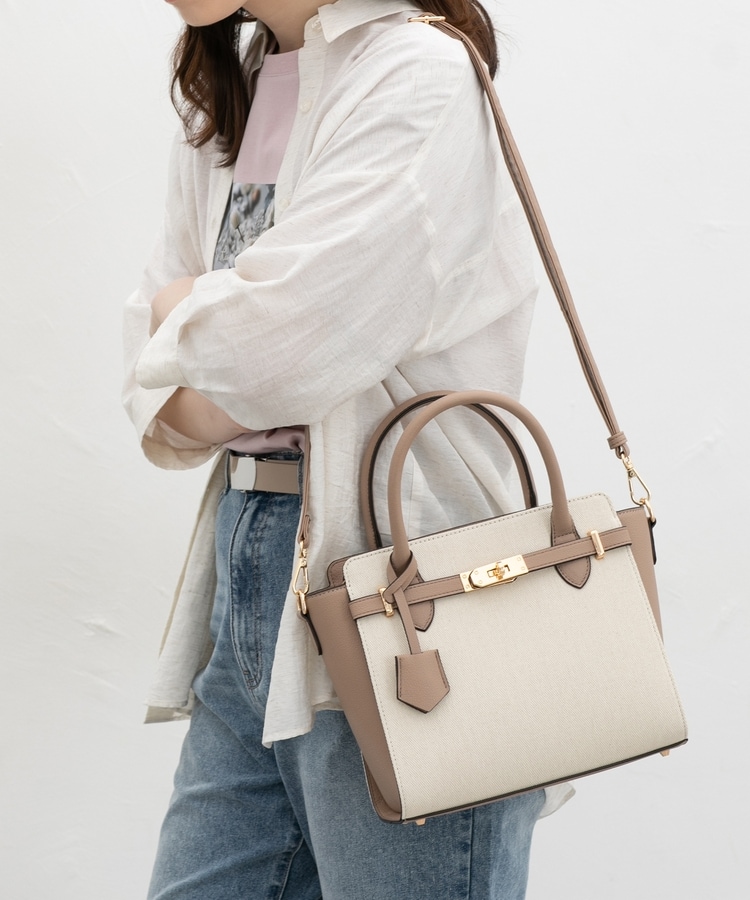 キャンバス生地とフェイクレザーのコンビネーションデザイン。