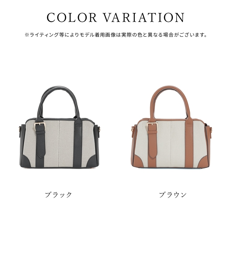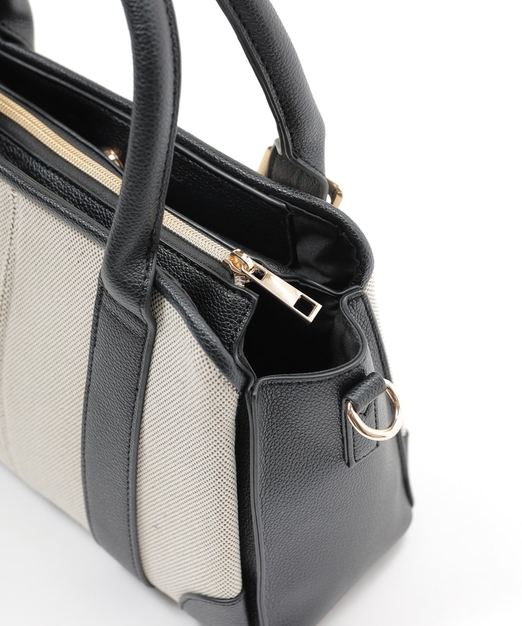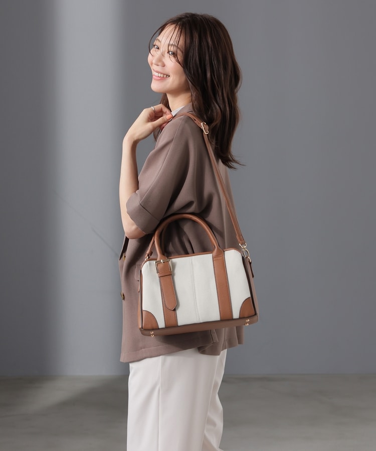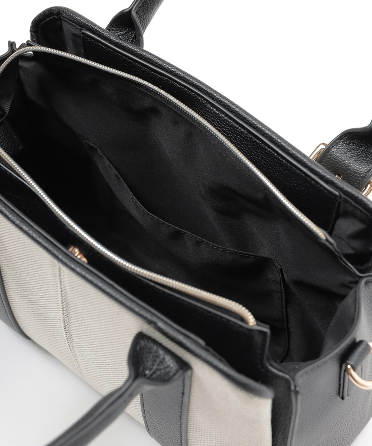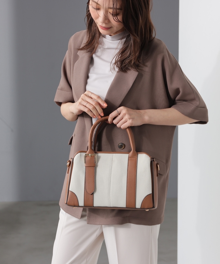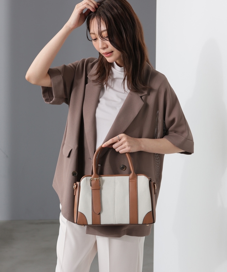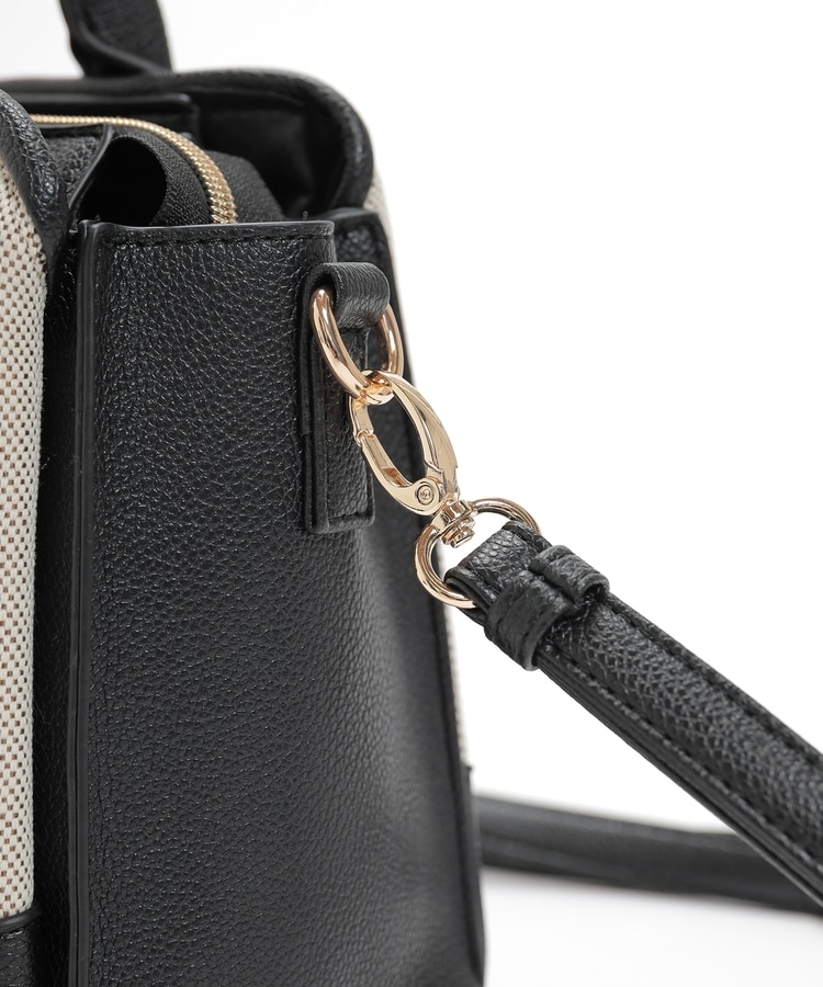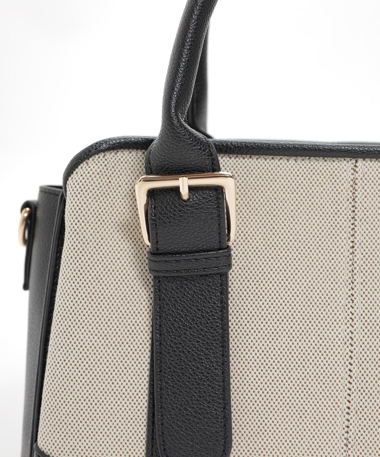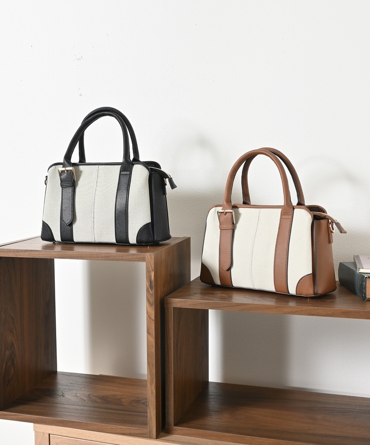キャンバス生地とフェイクレザーのコンビネーションデザイン。
