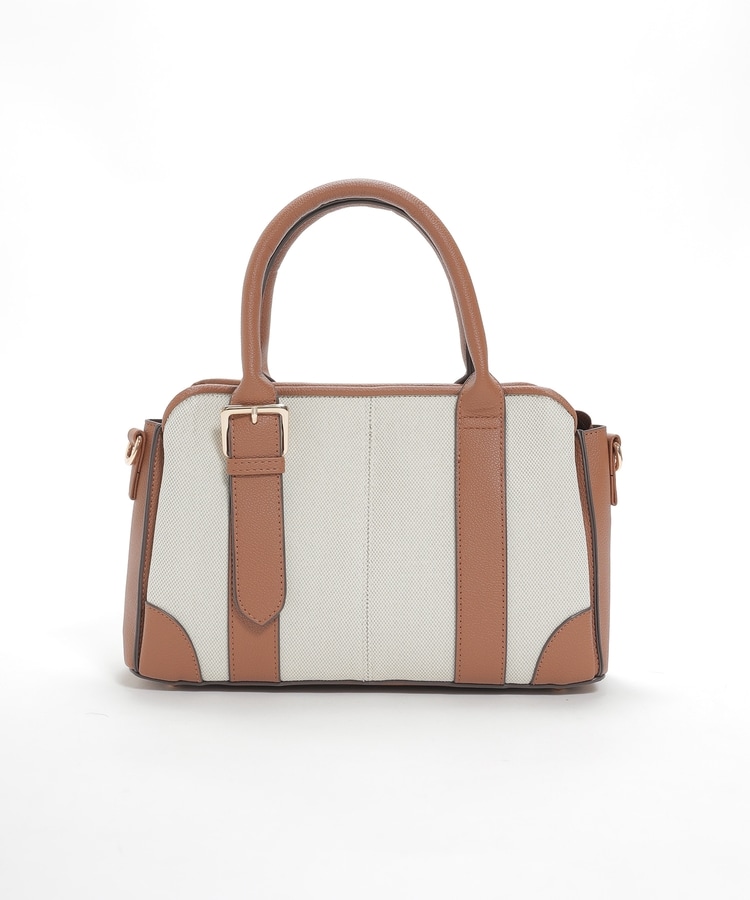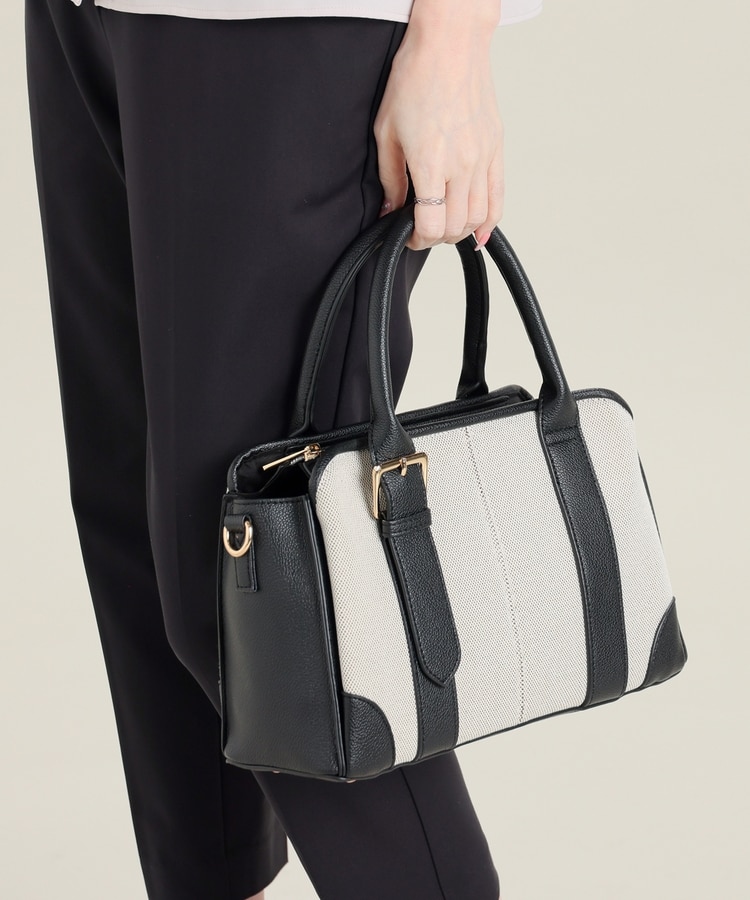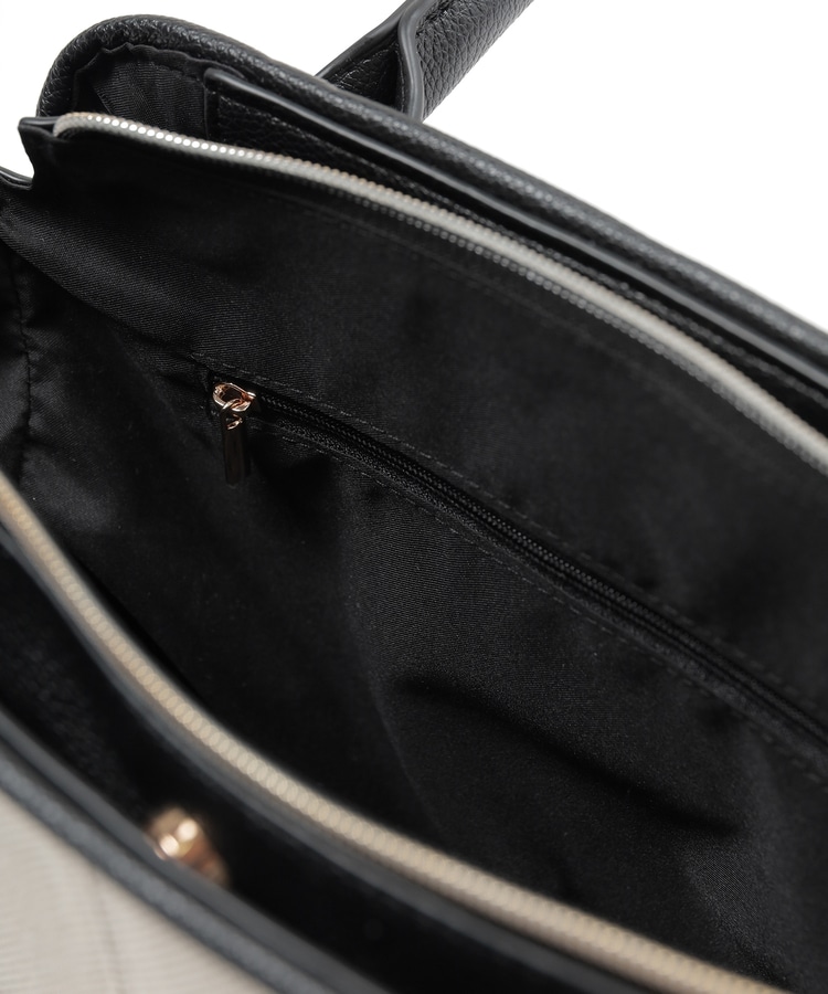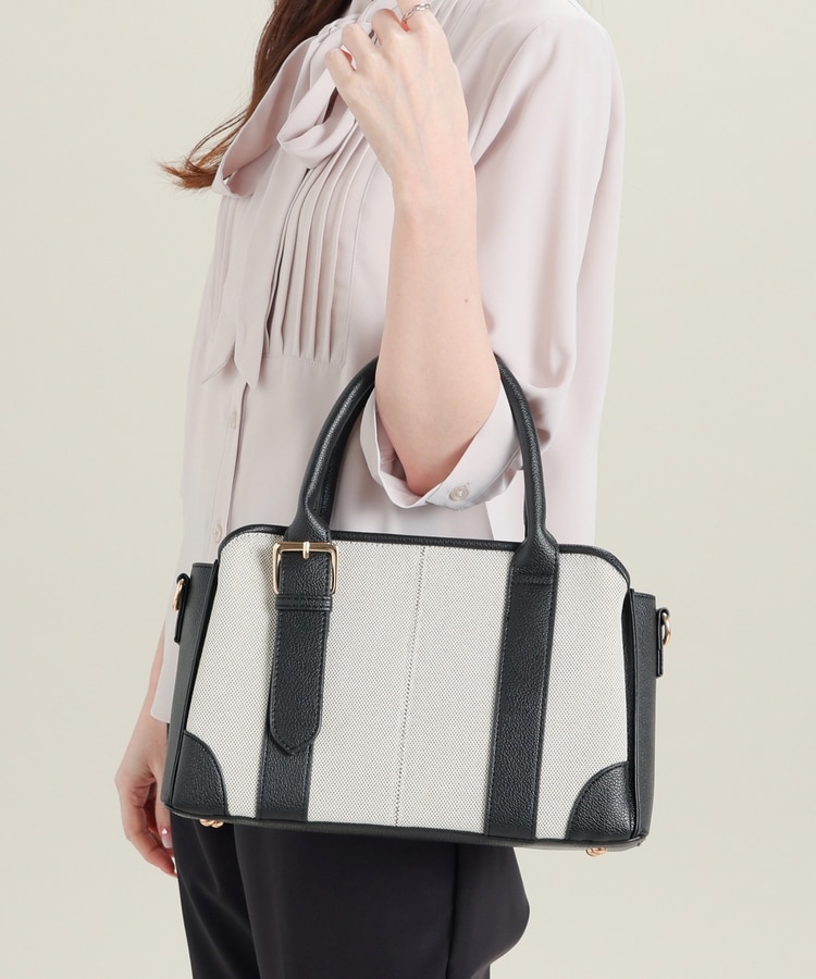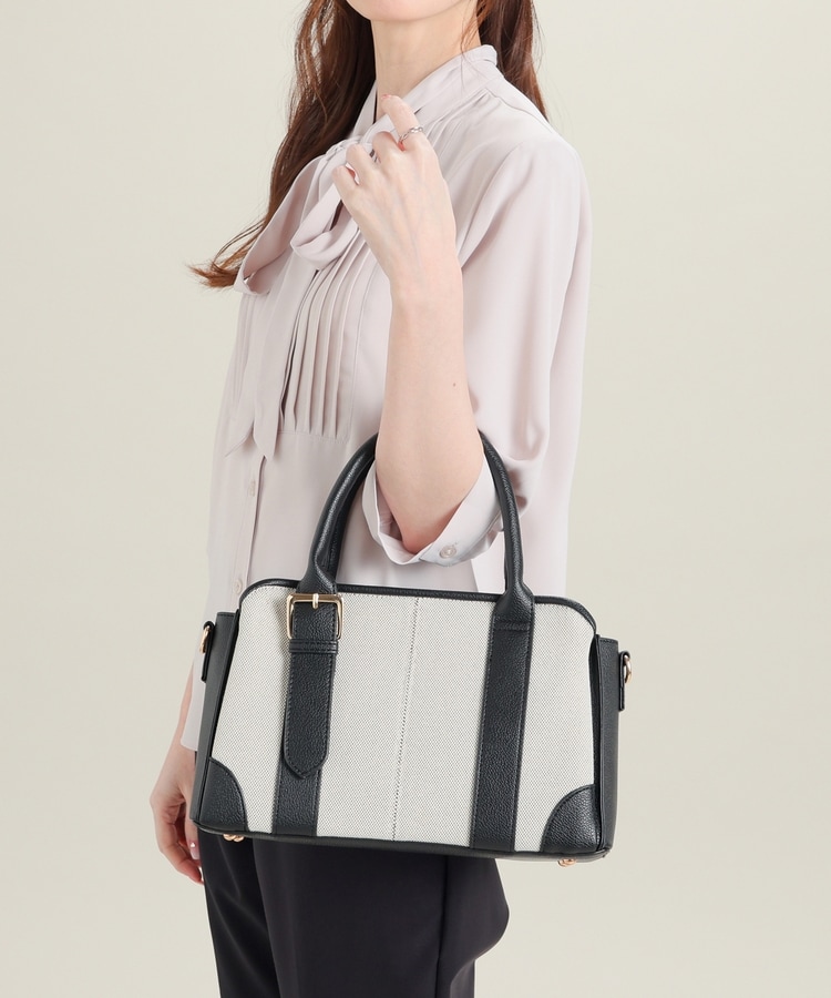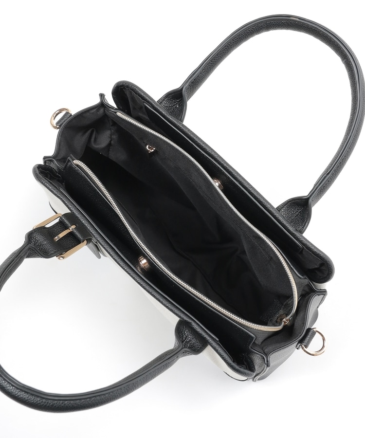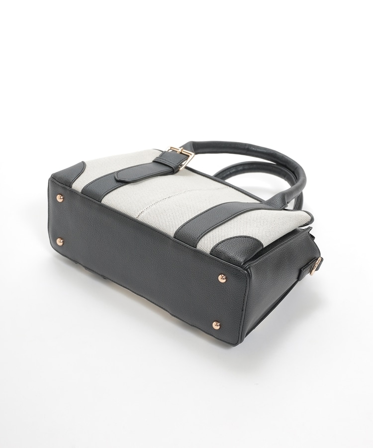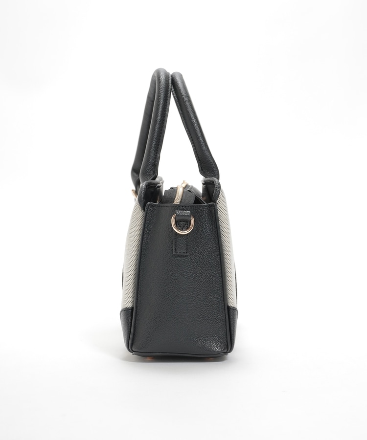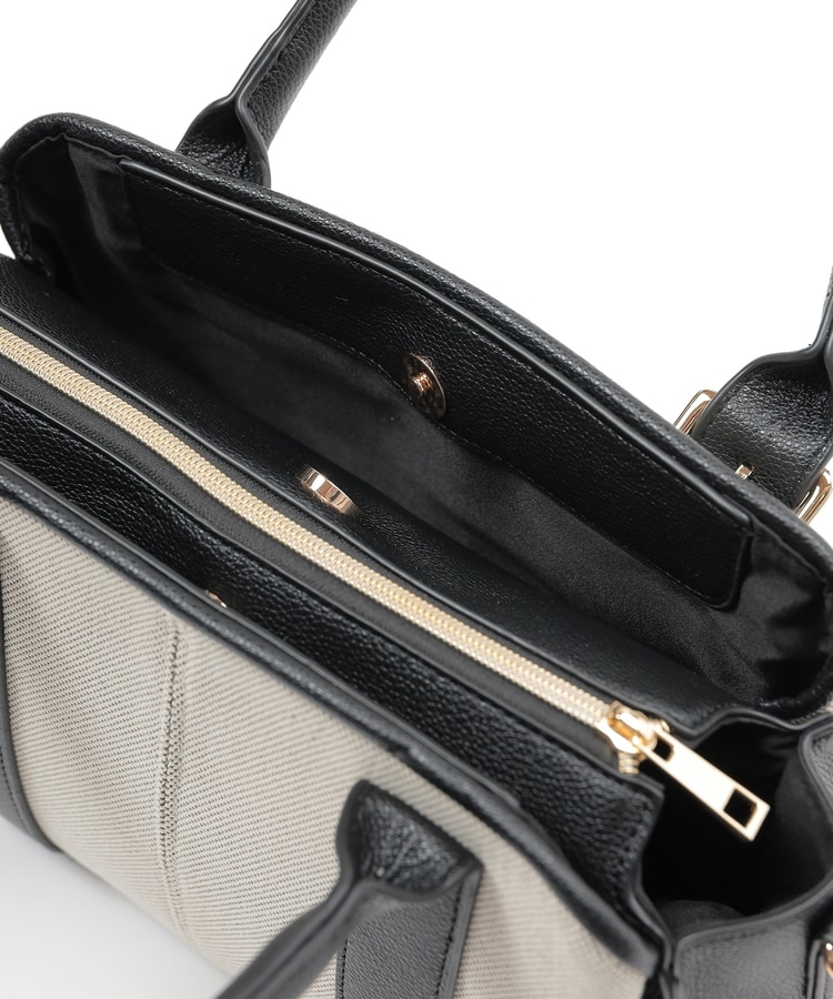 キャンバス生地とフェイクレザーのコンビネーションデザイン。