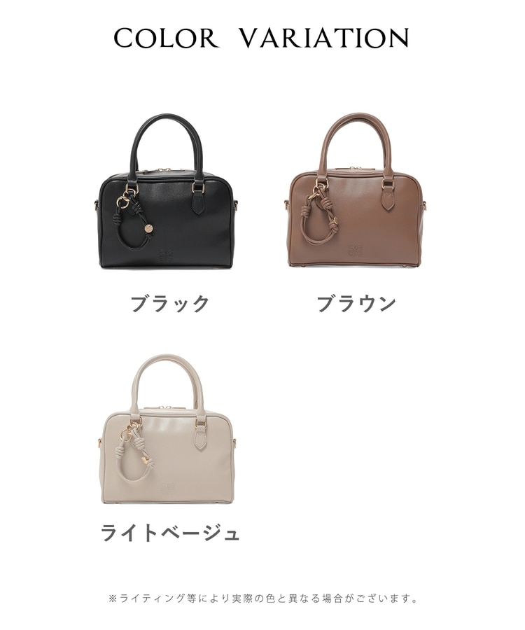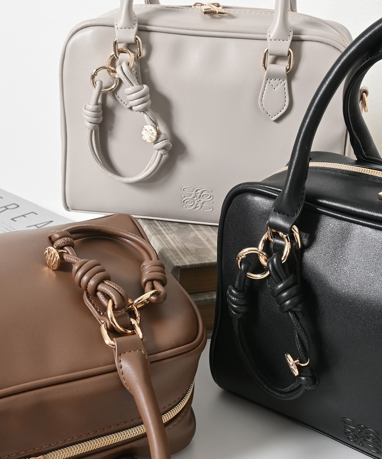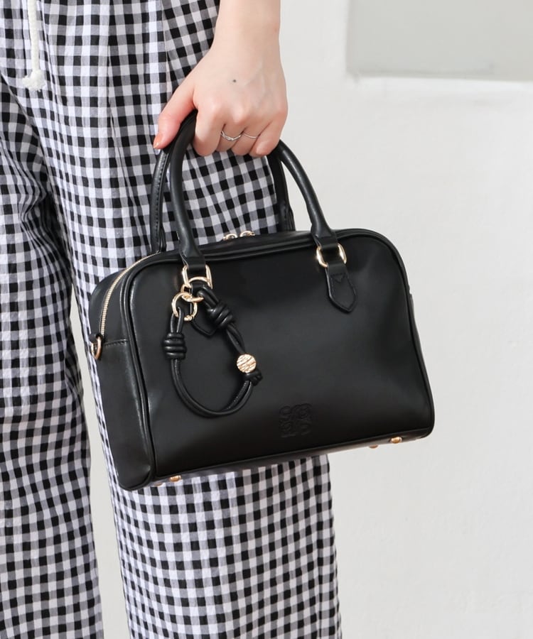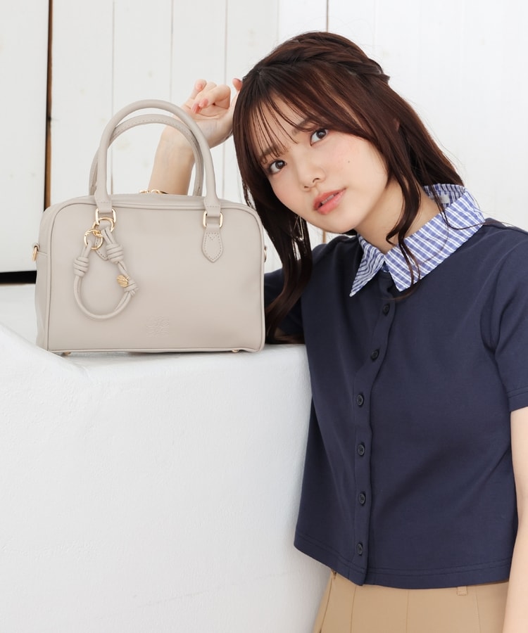 おしゃれな型押しロゴとチャームがアクセント。