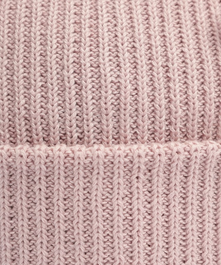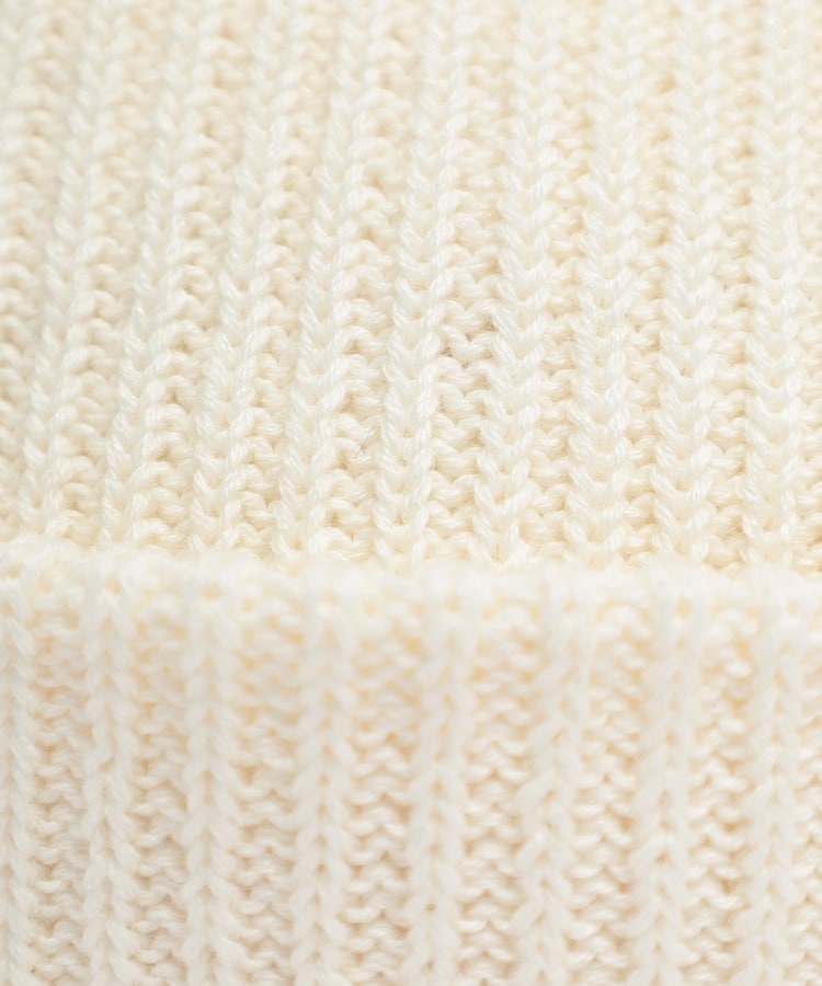 伸縮性のある縦目のリブ編み素材。