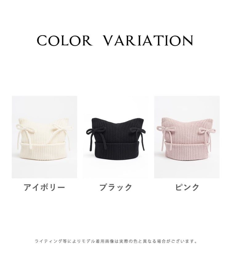リボン付ネコ耳ニット帽