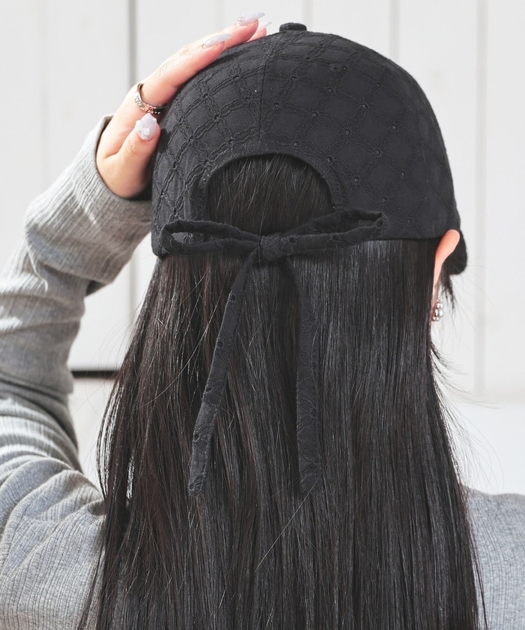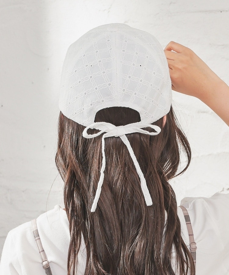 カジュアルな印象のキャップながら、バッグリボンがさりげなくガーリーなデザイン。