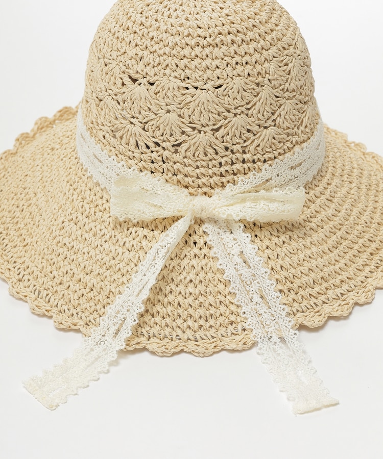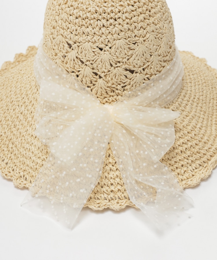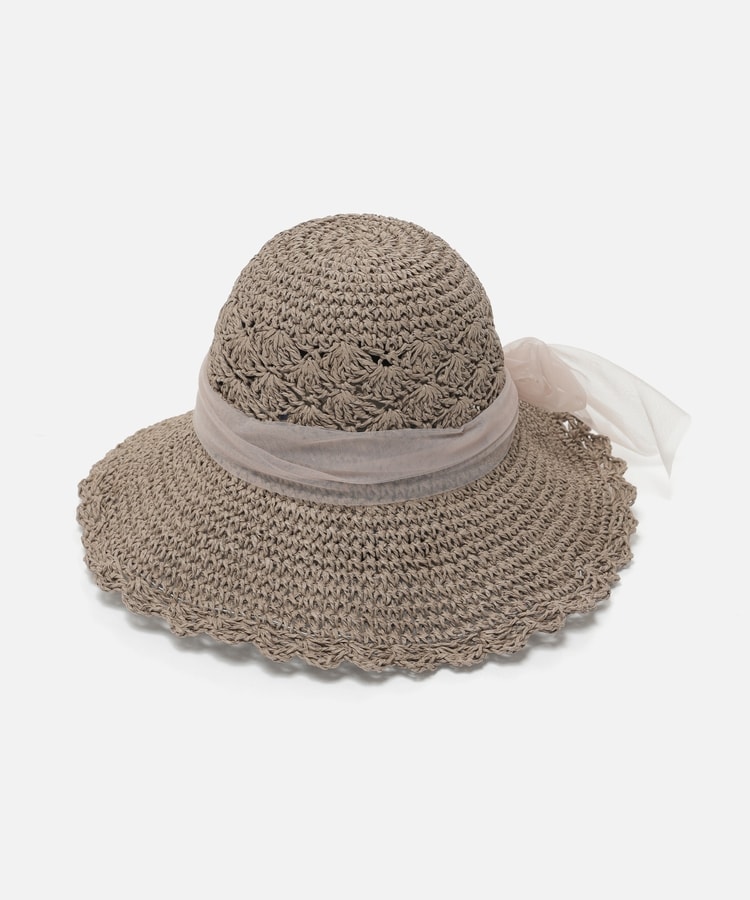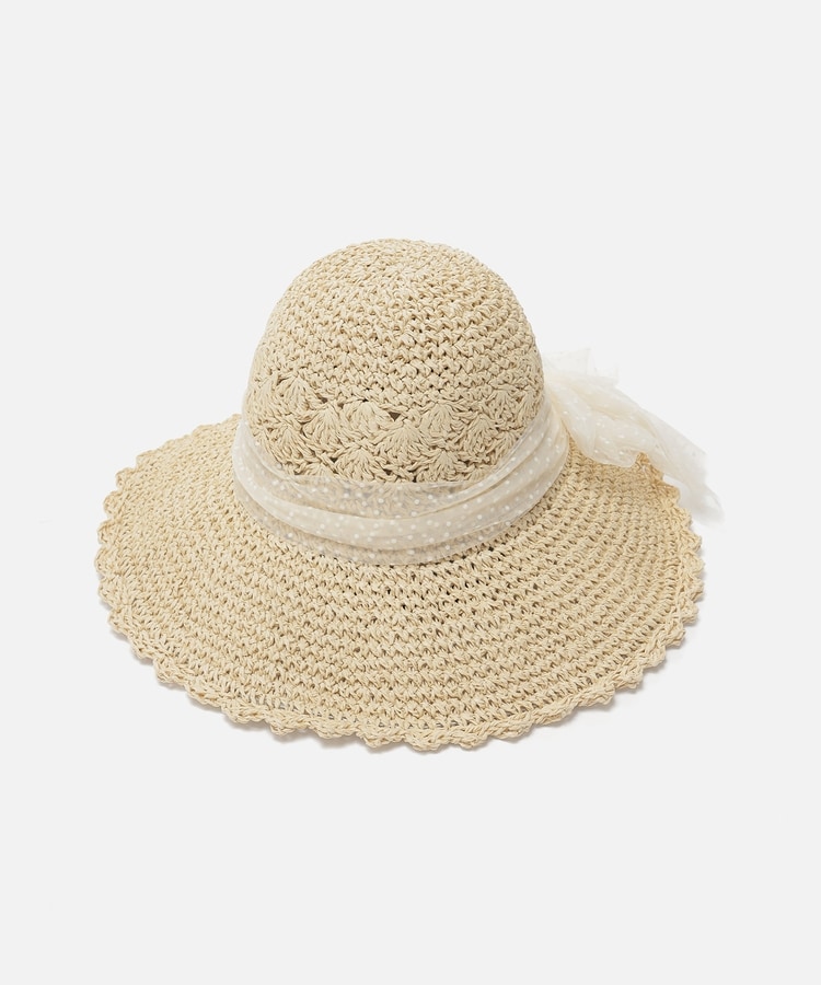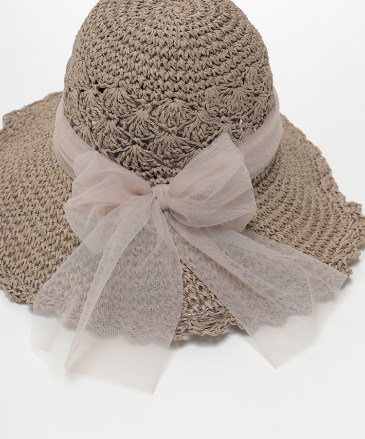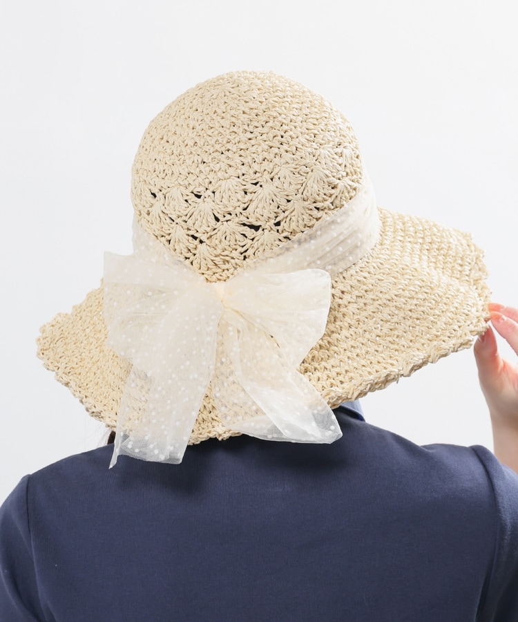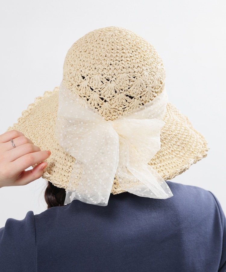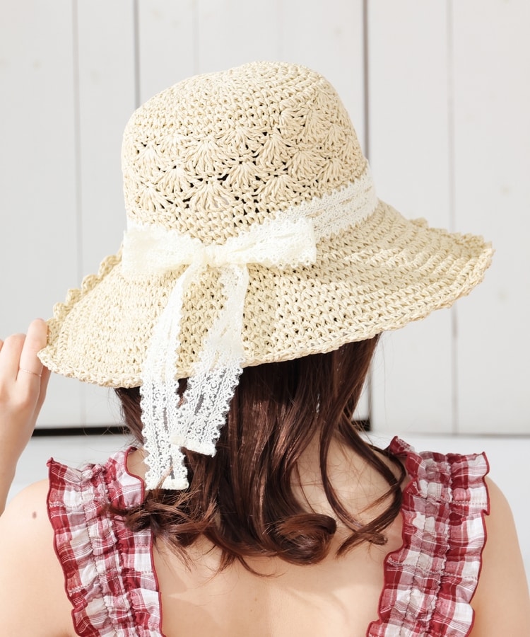 顔周りがすっぽり隠れる人気のつば広帽をガーリーにアップデート。