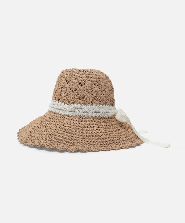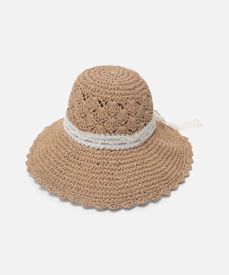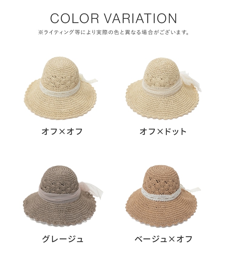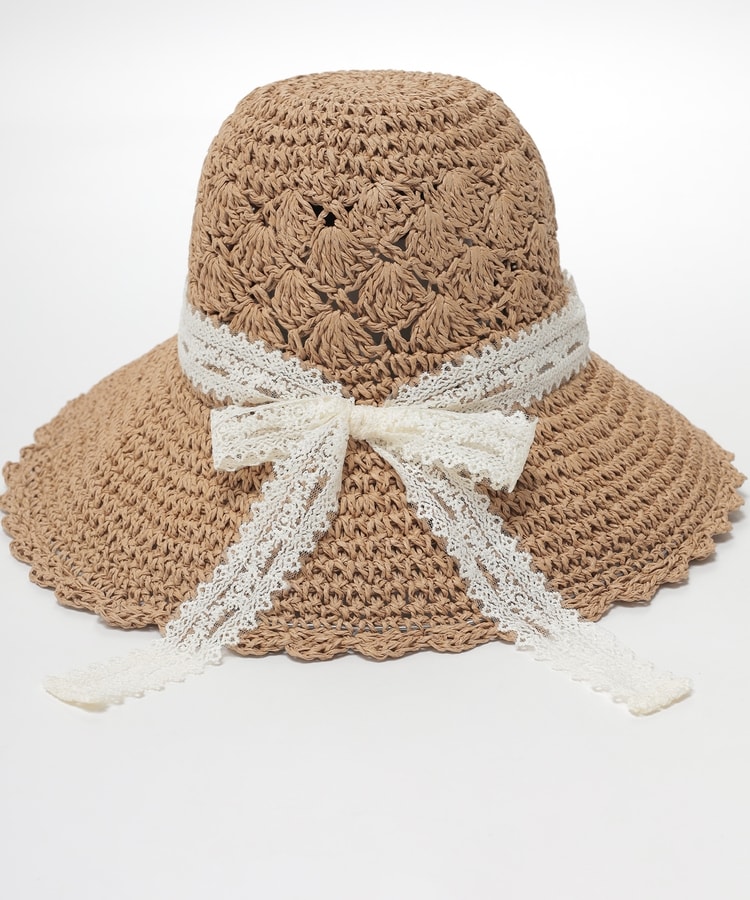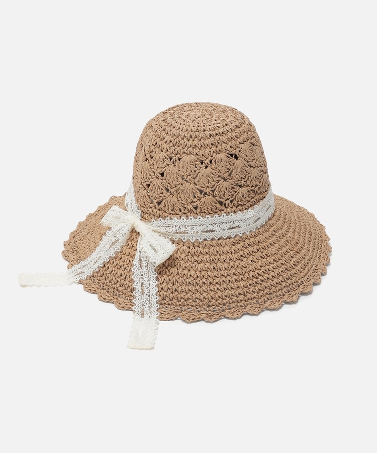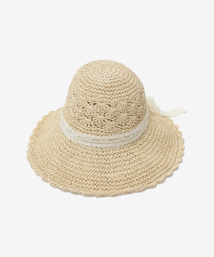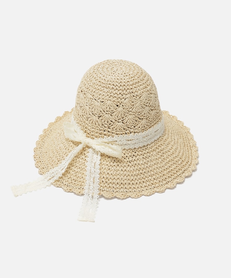 顔周りがすっぽり隠れる人気のつば広帽をガーリーにアップデート。