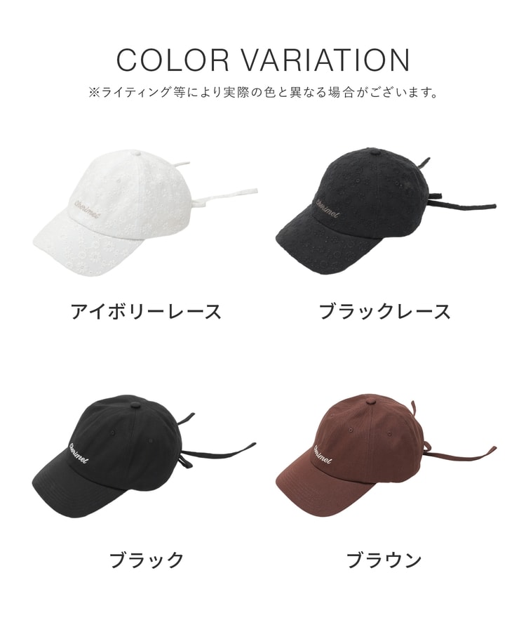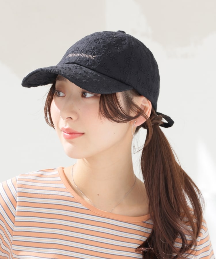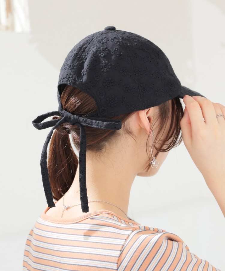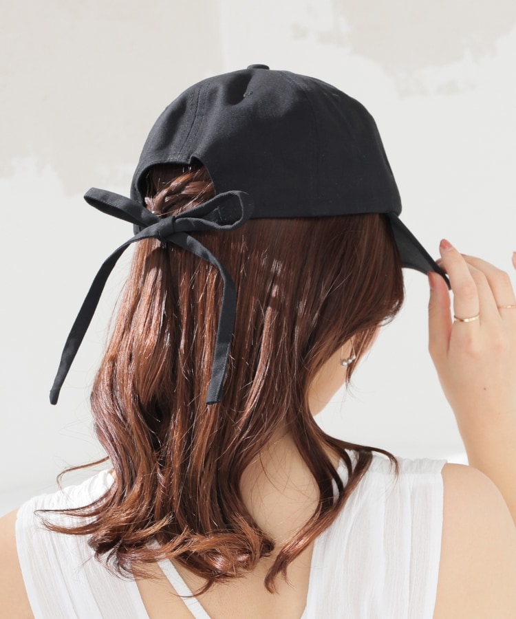 カジュアルな印象のキャップながら、バックリボンがさりげなくガーリーなデザイン。