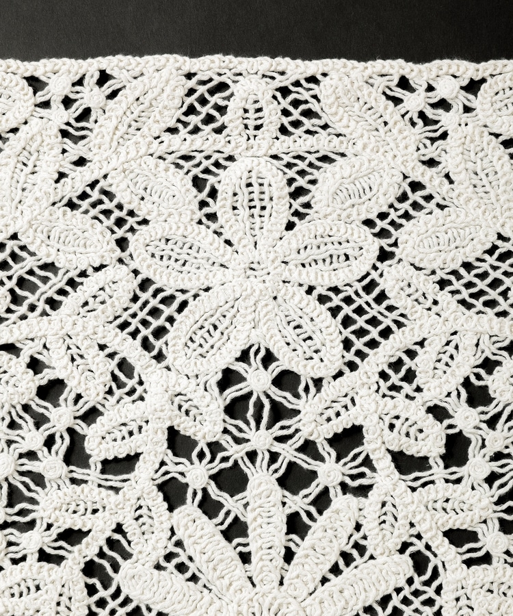 透け感のあるクロシェ編みの綿混素材。
