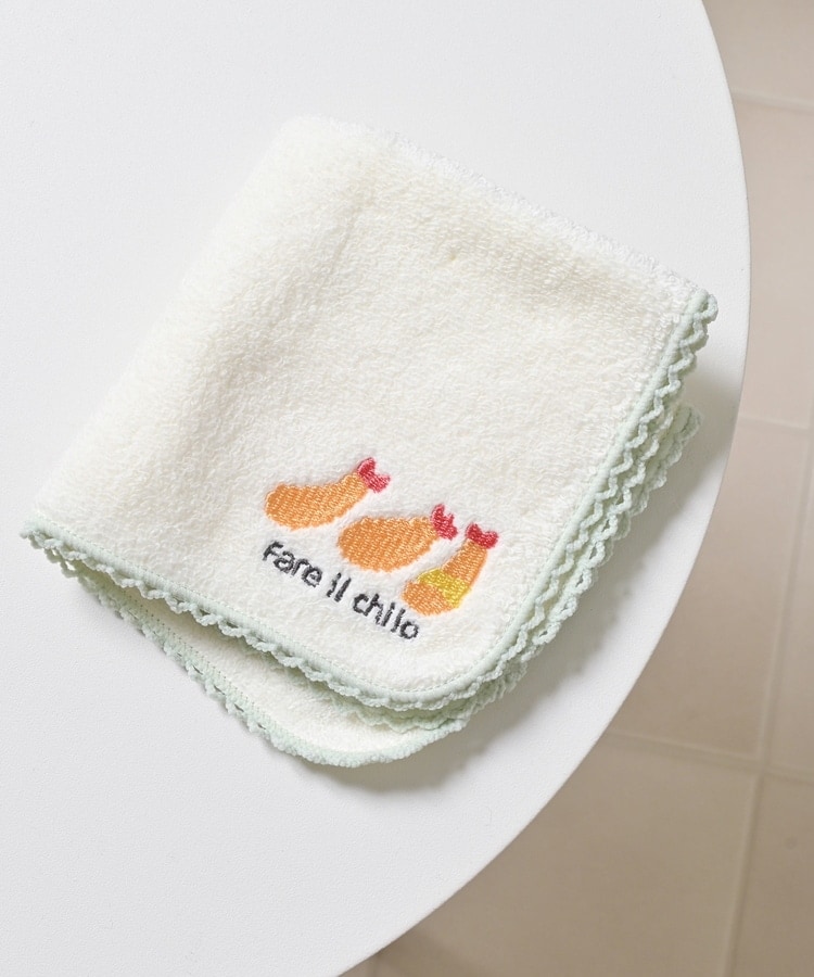 アニマルや食べ物などのキュートな刺繍とレースの縁取りがフェミニンなデザイン。