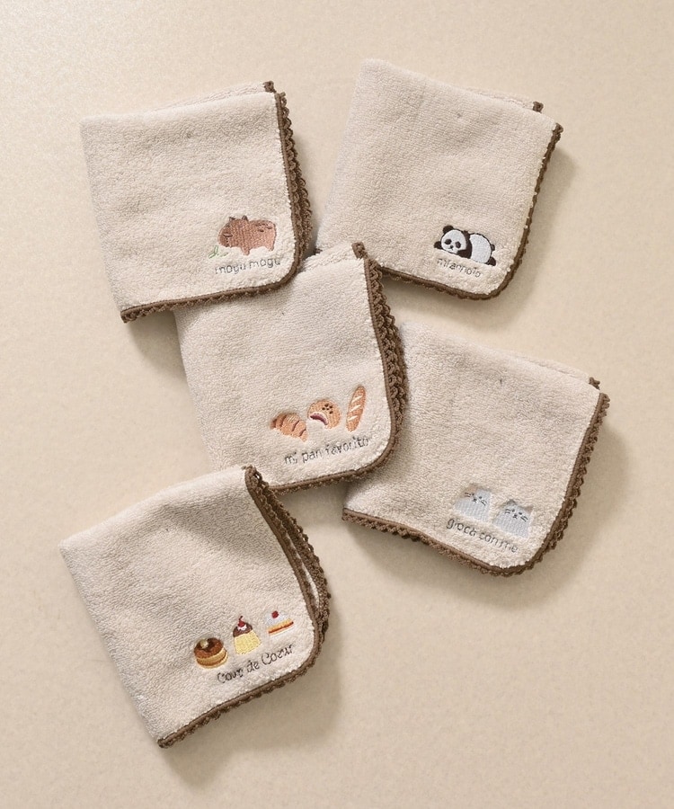 アニマルや食べ物などのキュートな刺繍とレースの縁取りがフェミニンなデザイン。