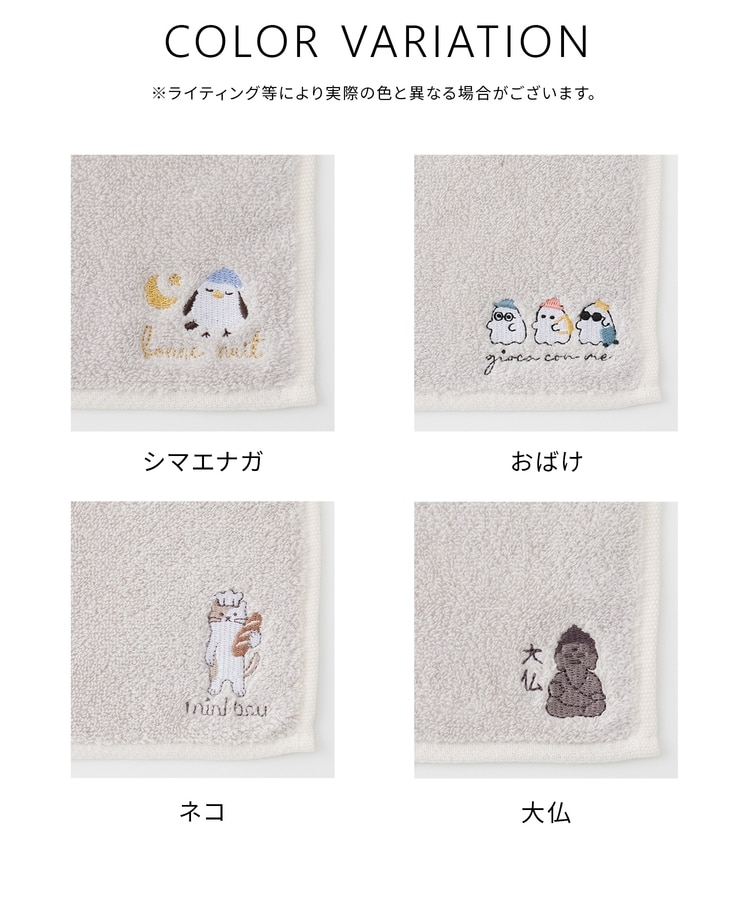 使うたびにほっこりする、ユニークなワンポイント刺繍。