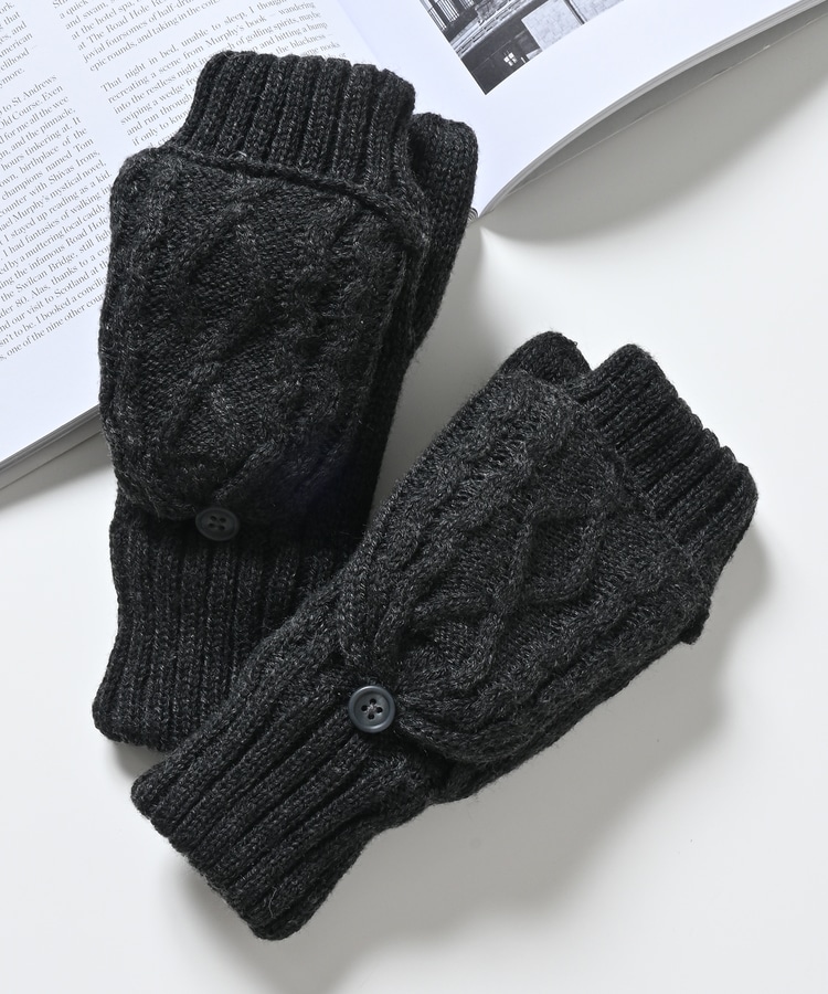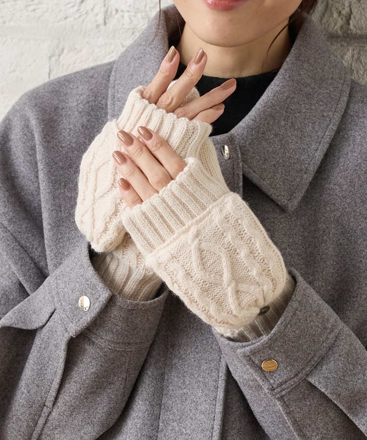 寒いときはフードをつけてミトン、スマホを操作するときはフィンガーレスで使える便利な2wayタイプ。