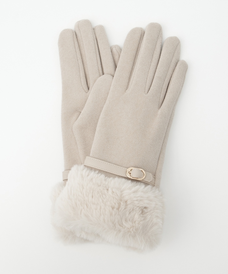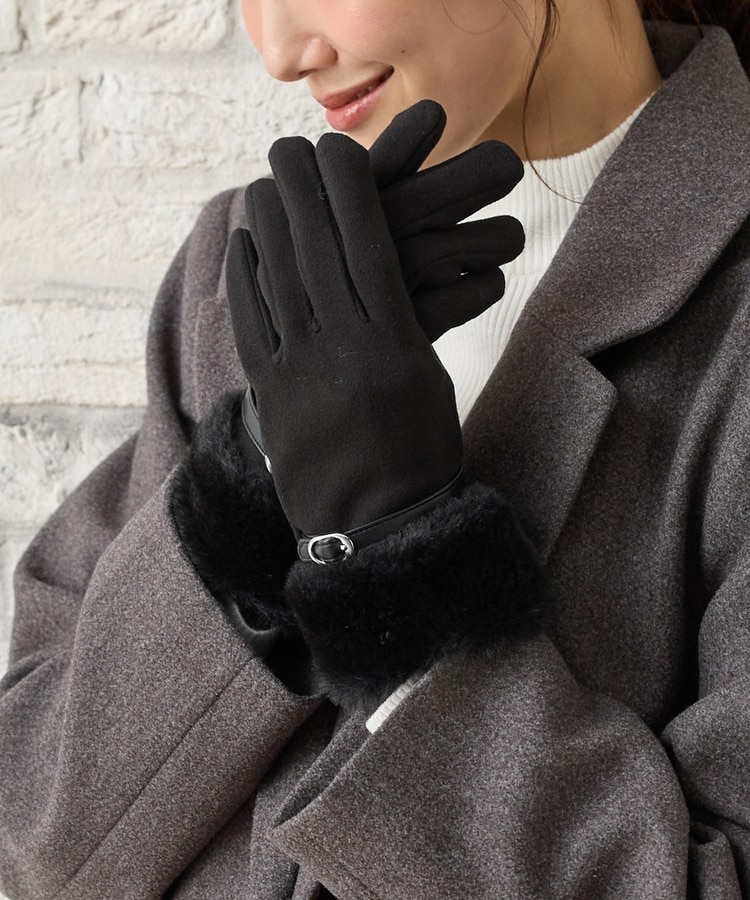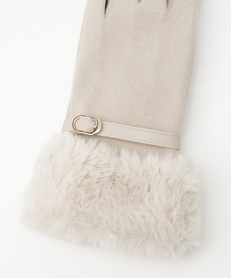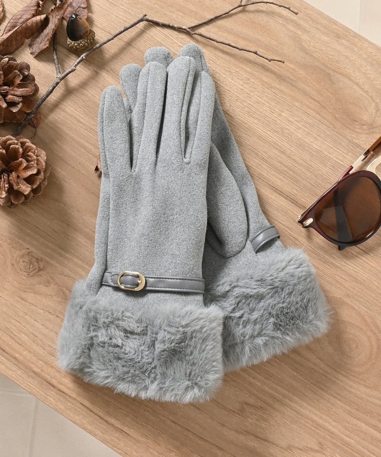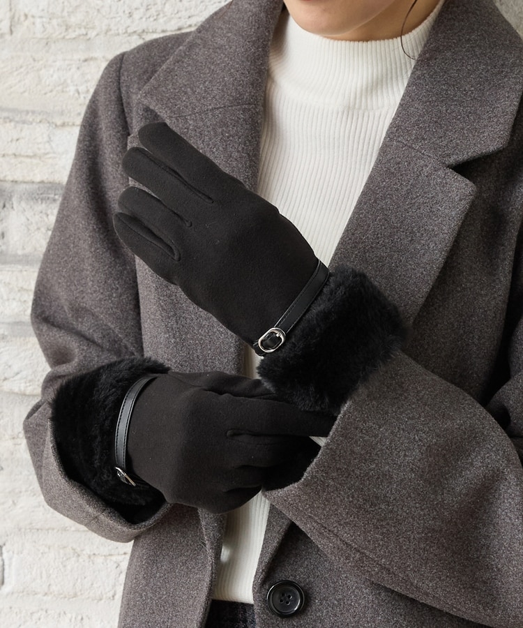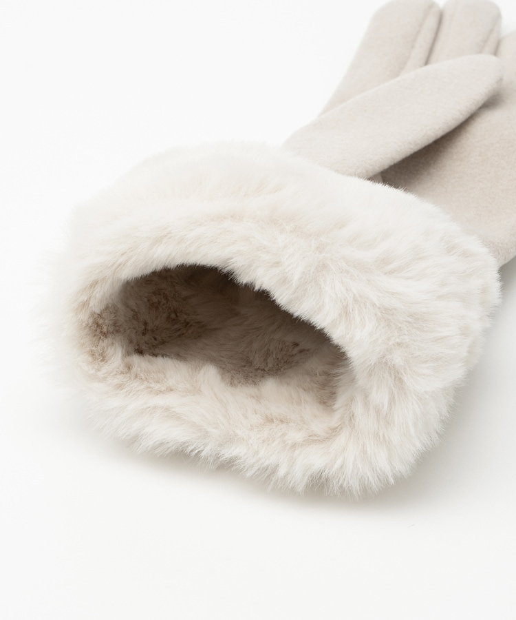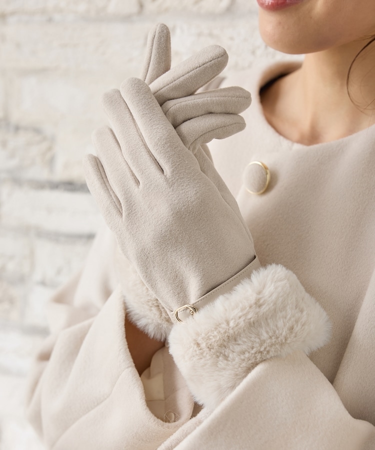 手首を優しく包み込んで冷気の侵入を防ぐ、エレガントなフェイクファー付きデザイン。
