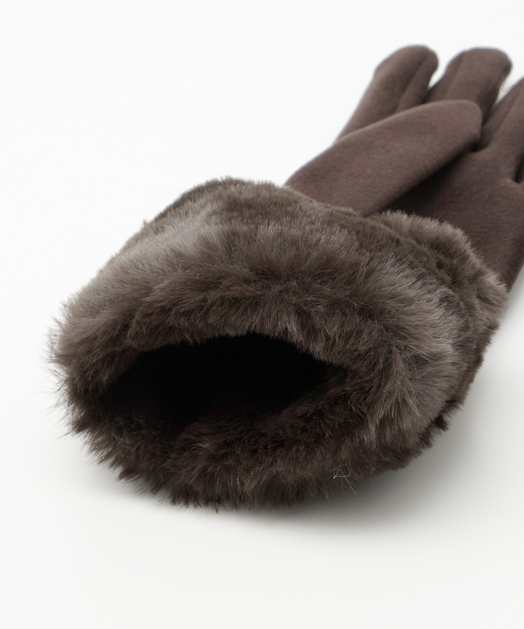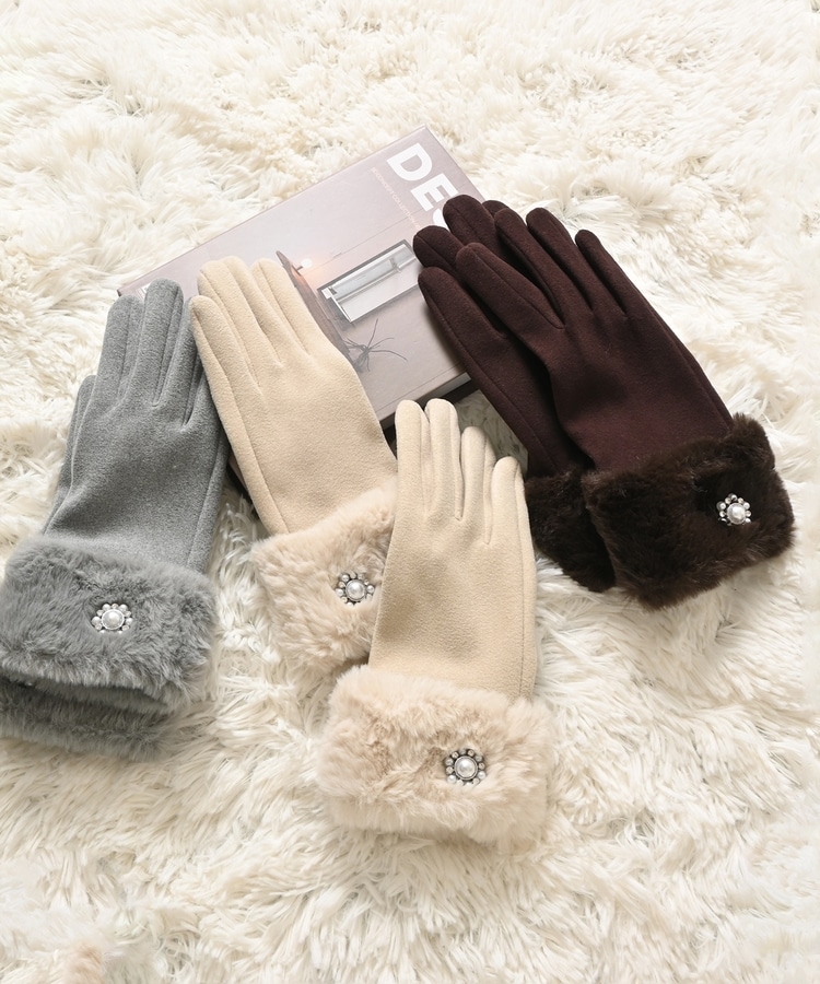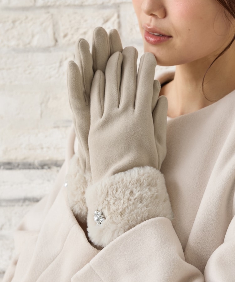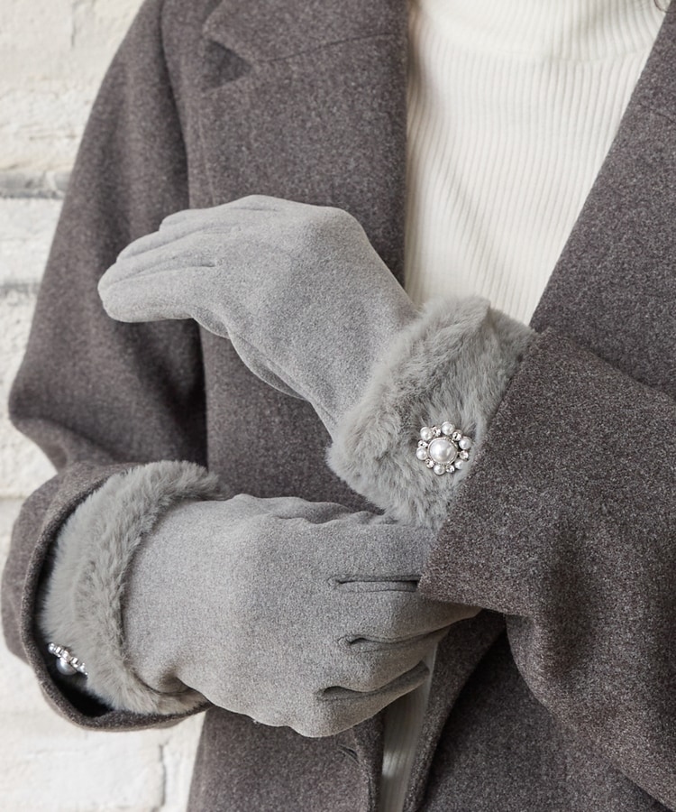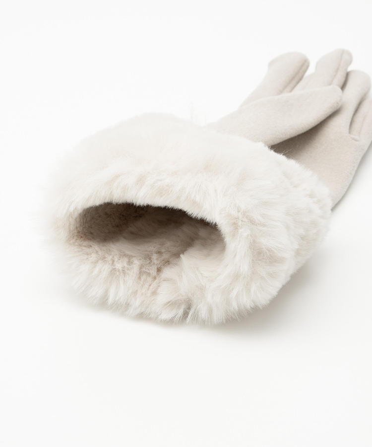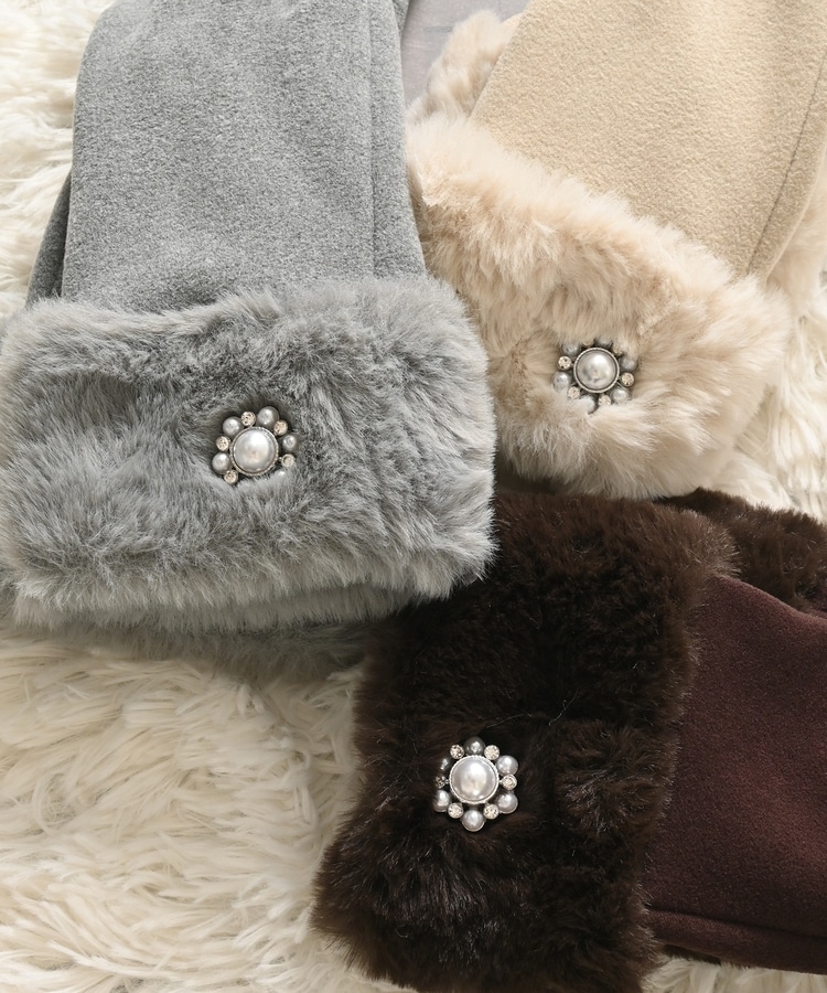手首を優しく包み込んで冷気の侵入を防ぐ、エレガントなフェイクファー付きデザイン。