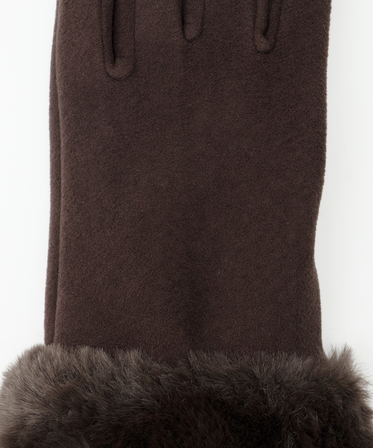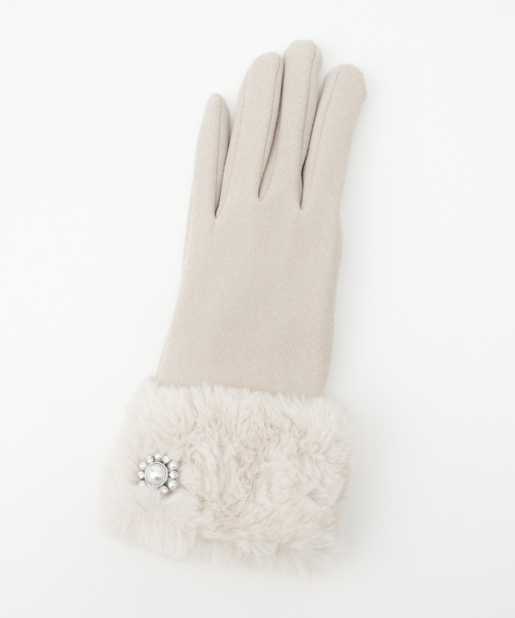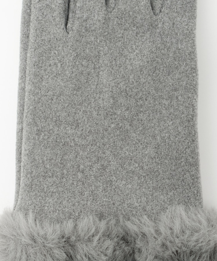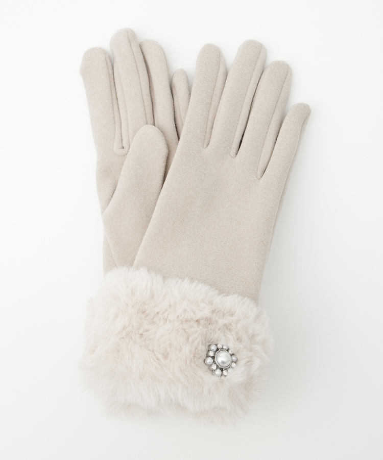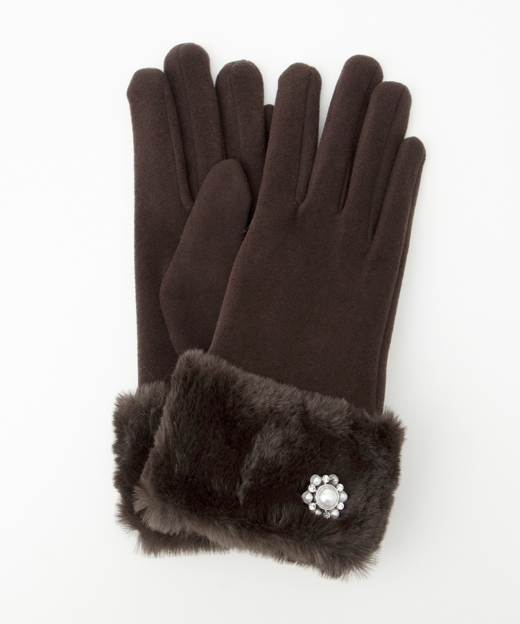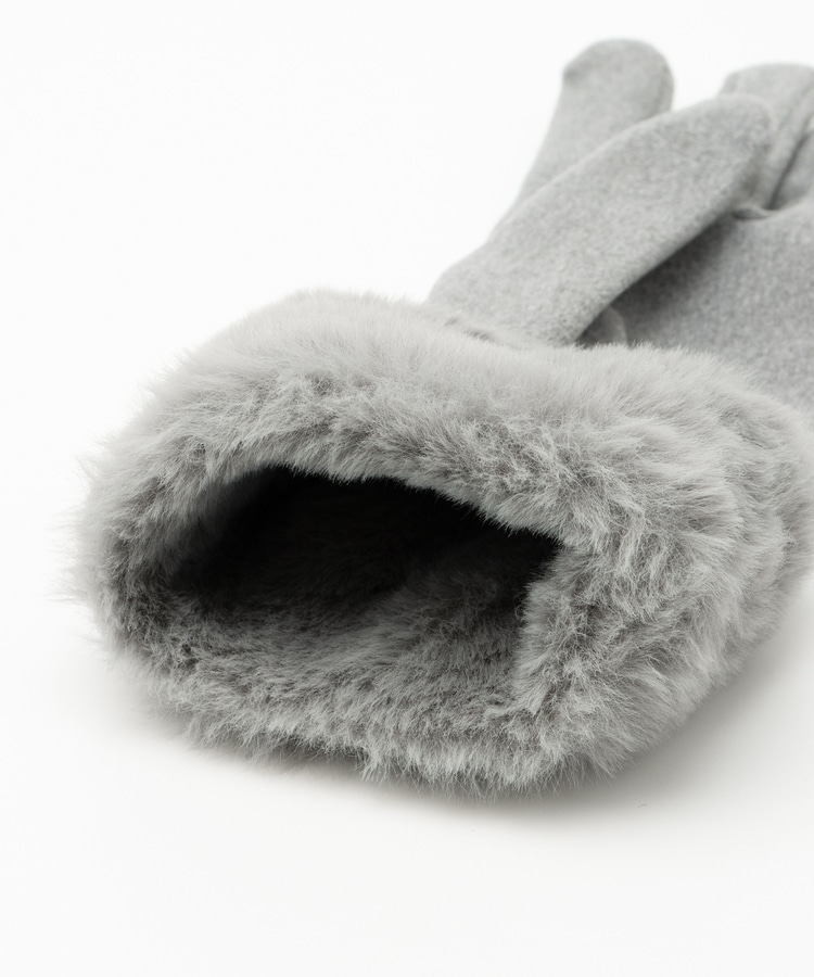 手首を優しく包み込んで冷気の侵入を防ぐ、エレガントなフェイクファー付きデザイン。