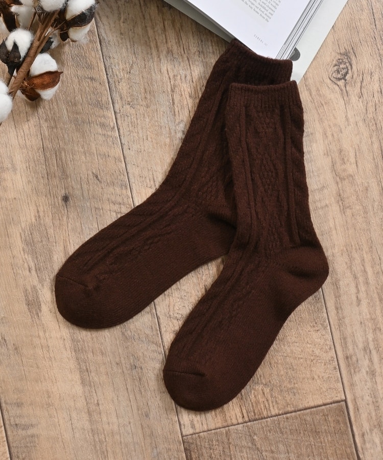 立体感のあるケーブルの編み柄がナチュラルな雰囲気の、エイジレスで履けるシンプルなデザイン。