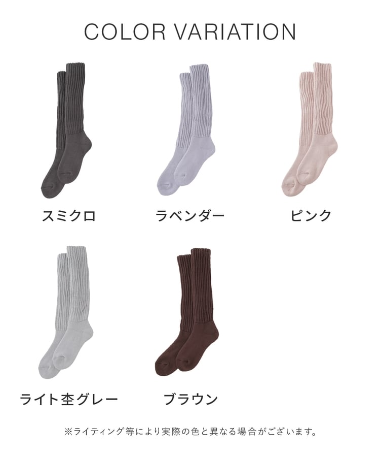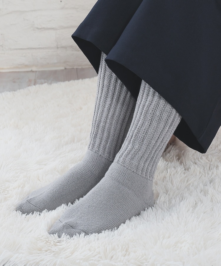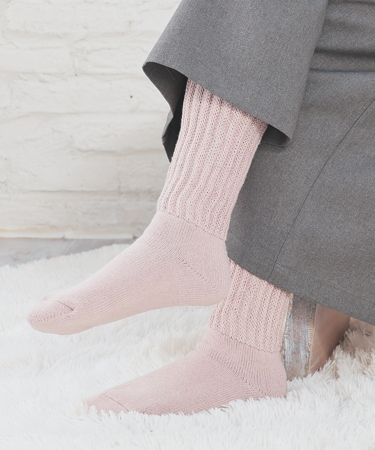 締め付け感のない、ゆったりしたリブ編みで、リラクシーなはき心地。