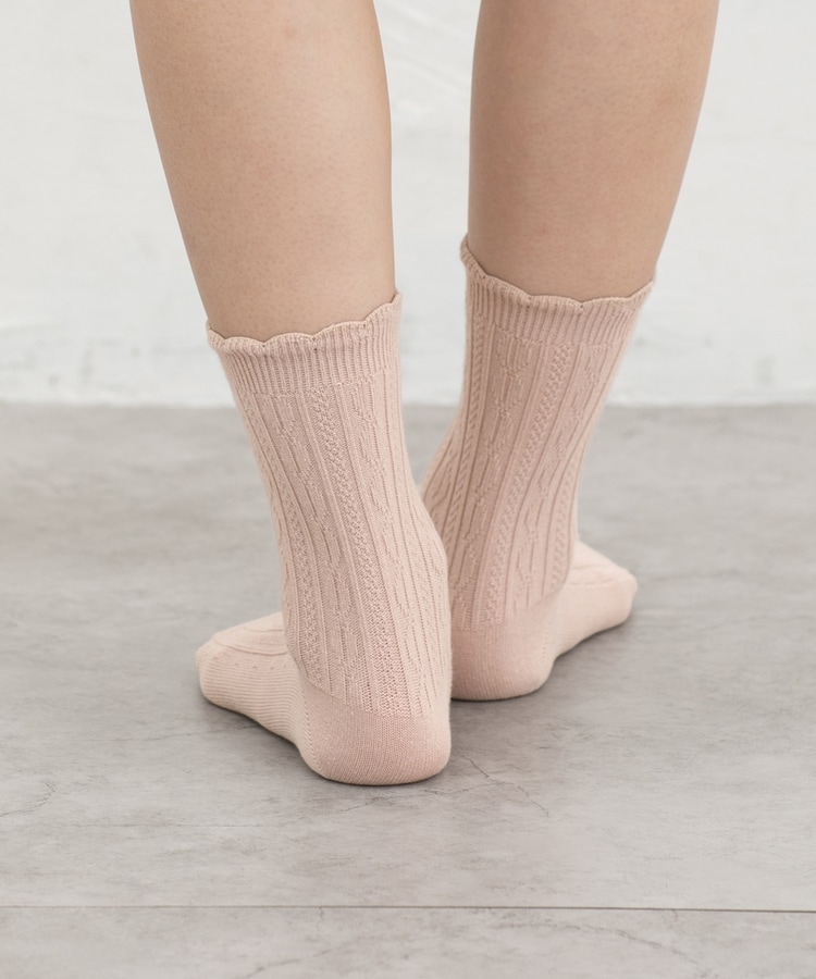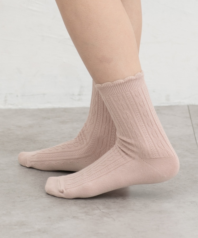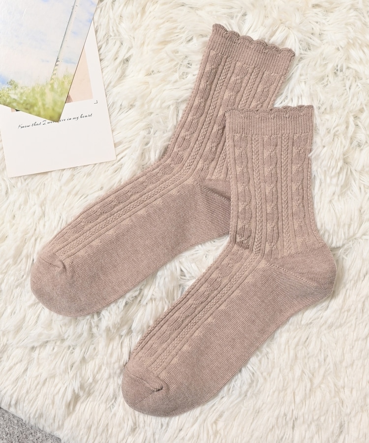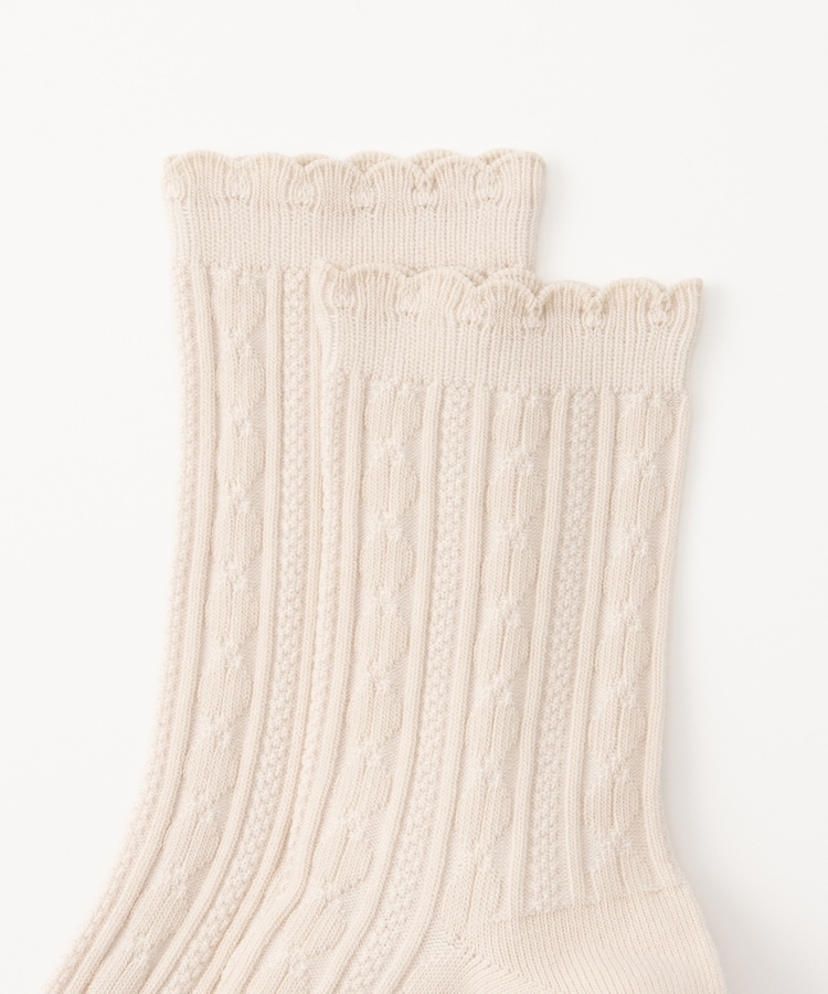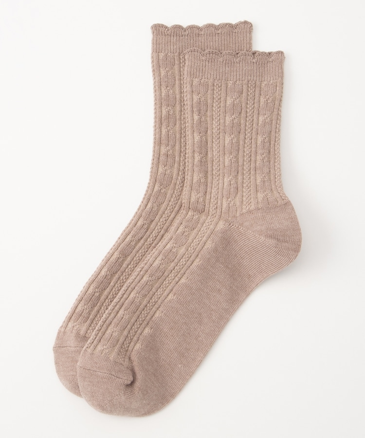 ナチュラルで優しげな雰囲気のケーブル編みデザイン。