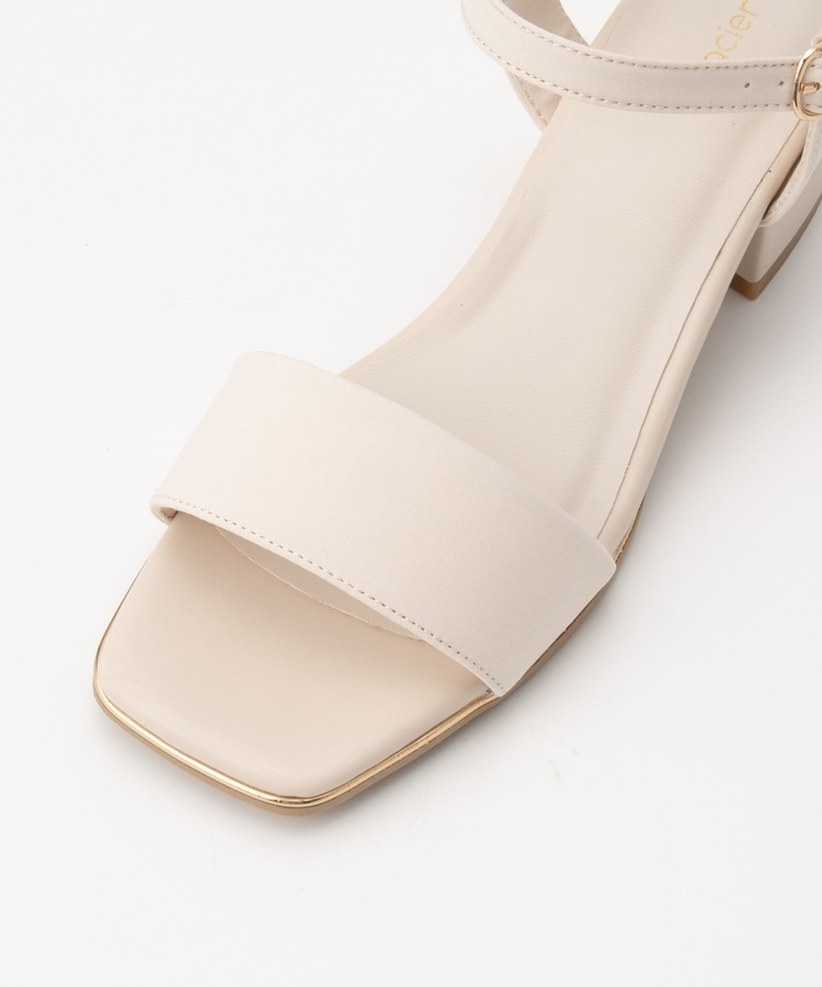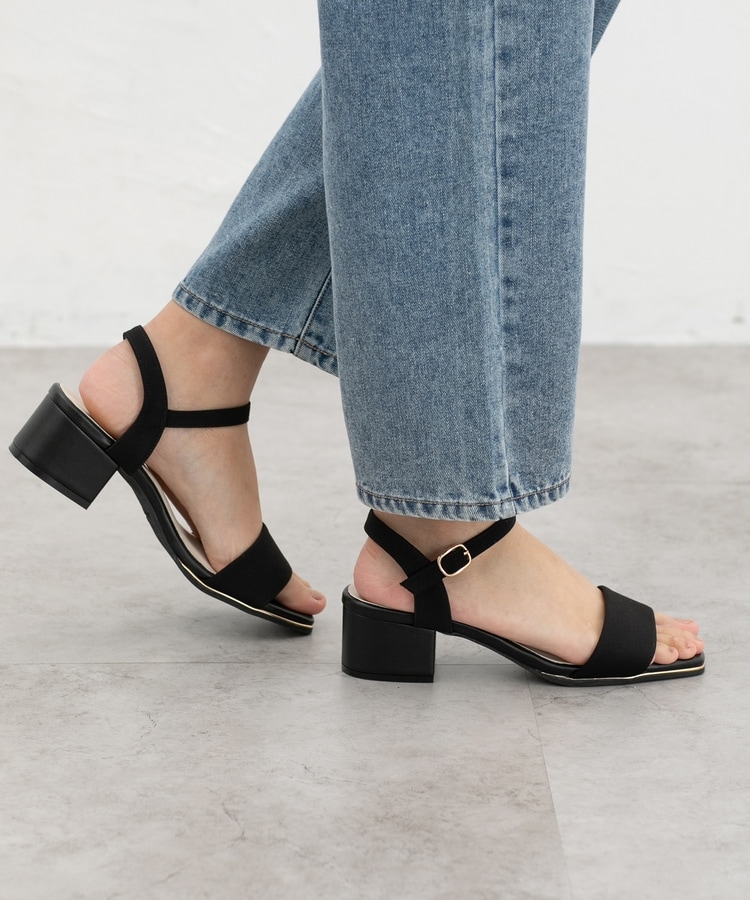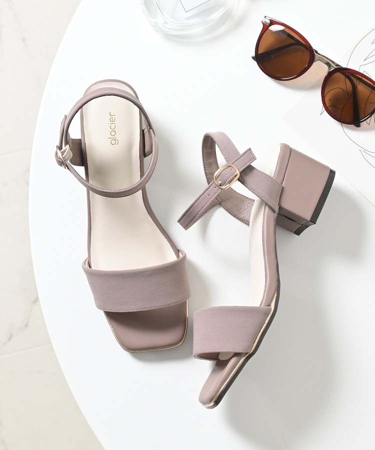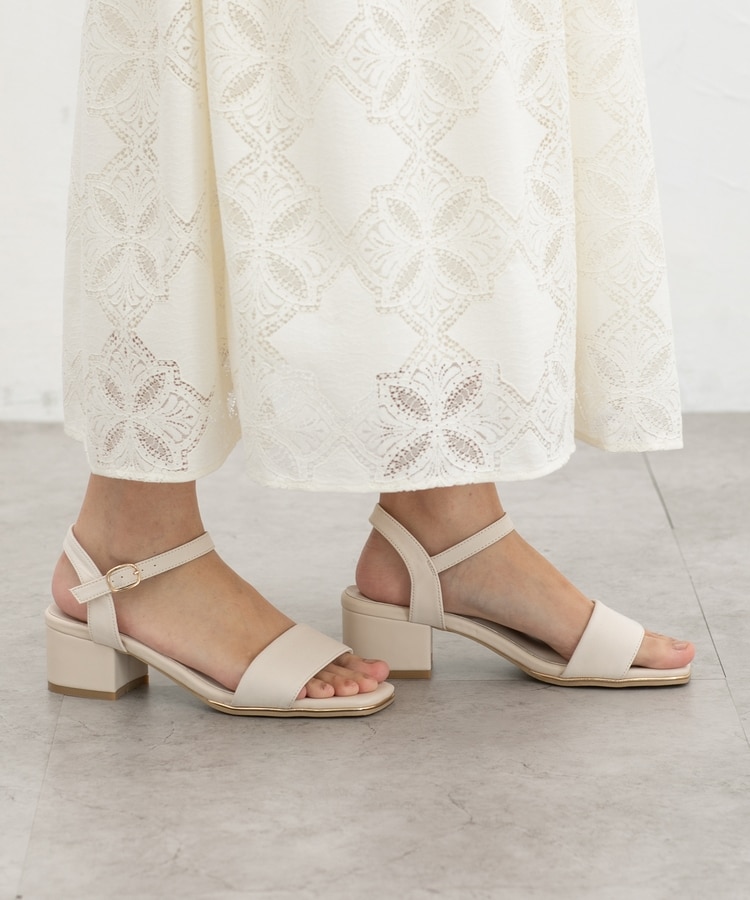 華奢なアンクルストラップとトレンドのスクエアトゥを取り入れた、シンプルで大人なデザイン。