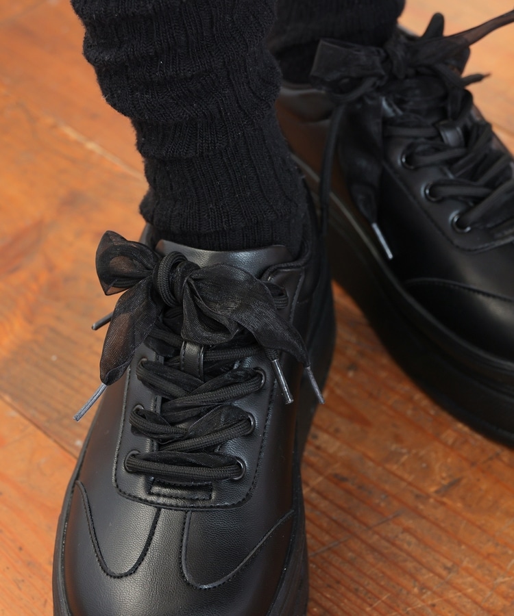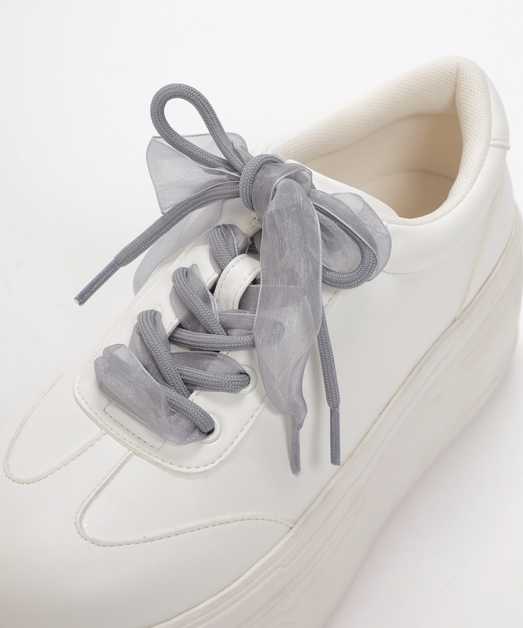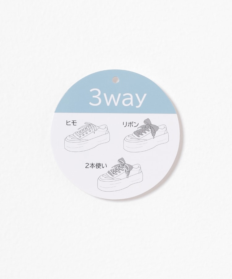 2種類の靴ひも付きで、丸紐・オーガンジーリボン紐・2本使いの3Wayで楽しめるデザイン。