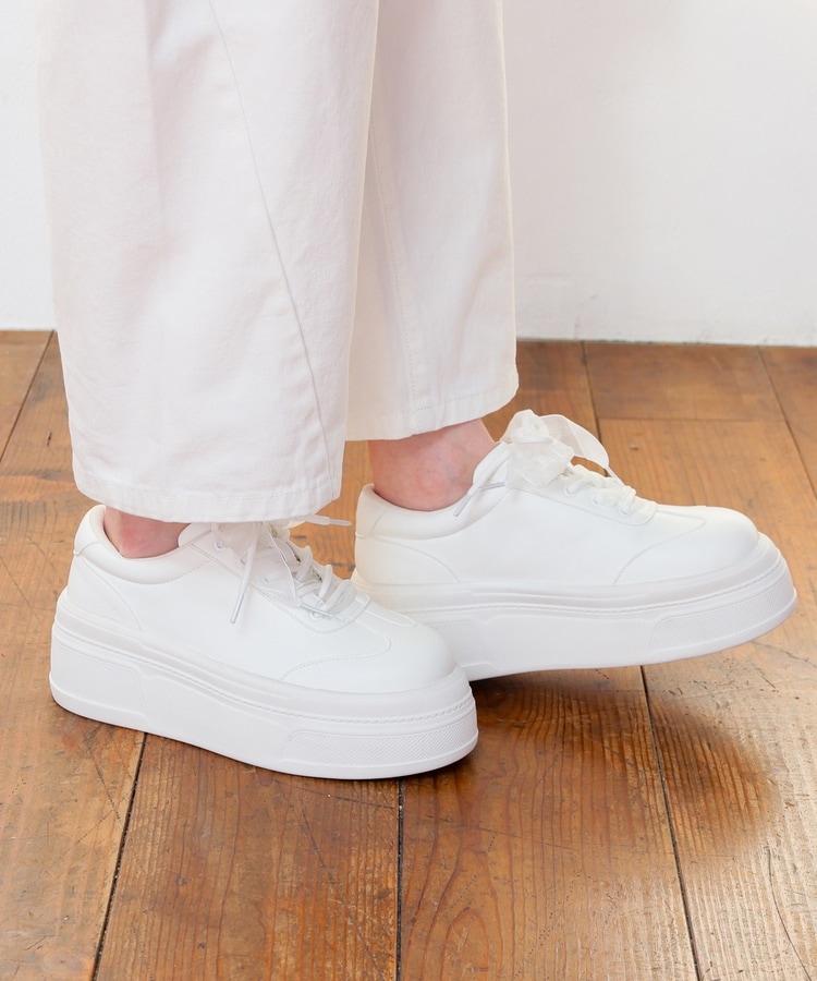 ボリュームのあるソールで、歩きやすく安定感のある履き心地ながらスタイルアップ効果も◎