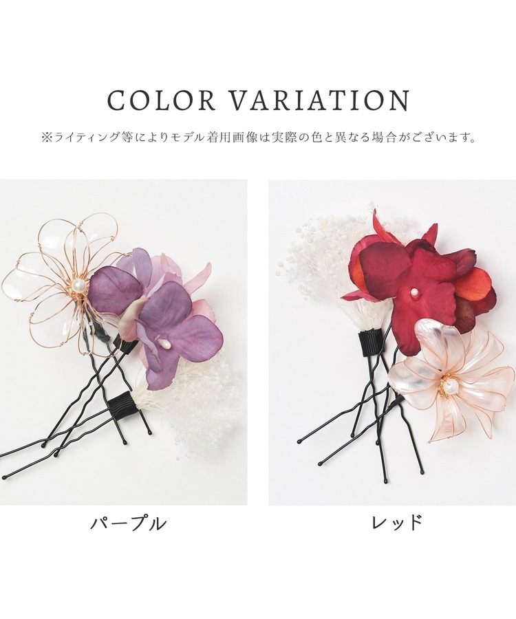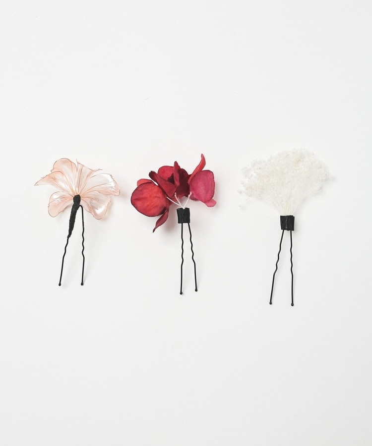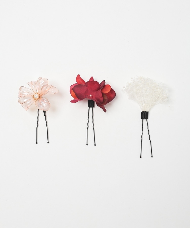 まとめて差してボリュームを楽しんだり、散らばせたりと、簡単に可愛らしいヘアアレンジが可能。