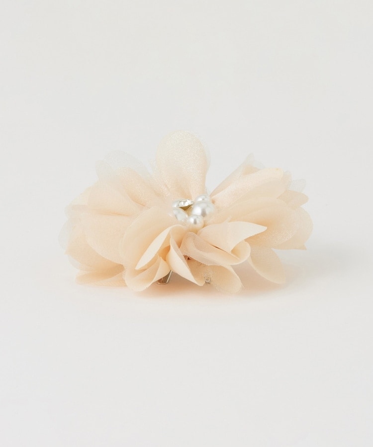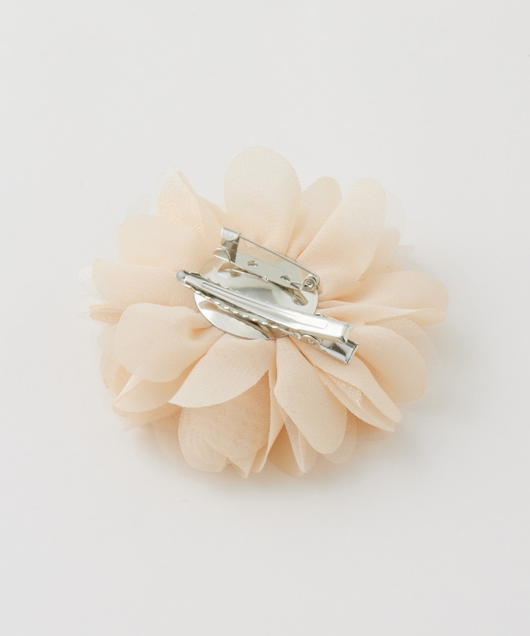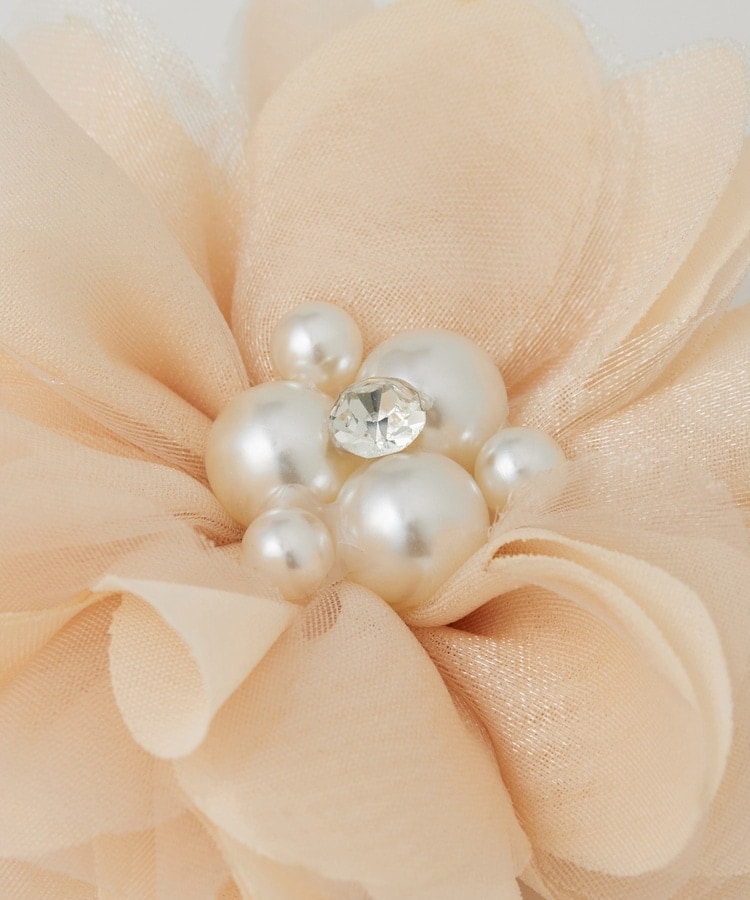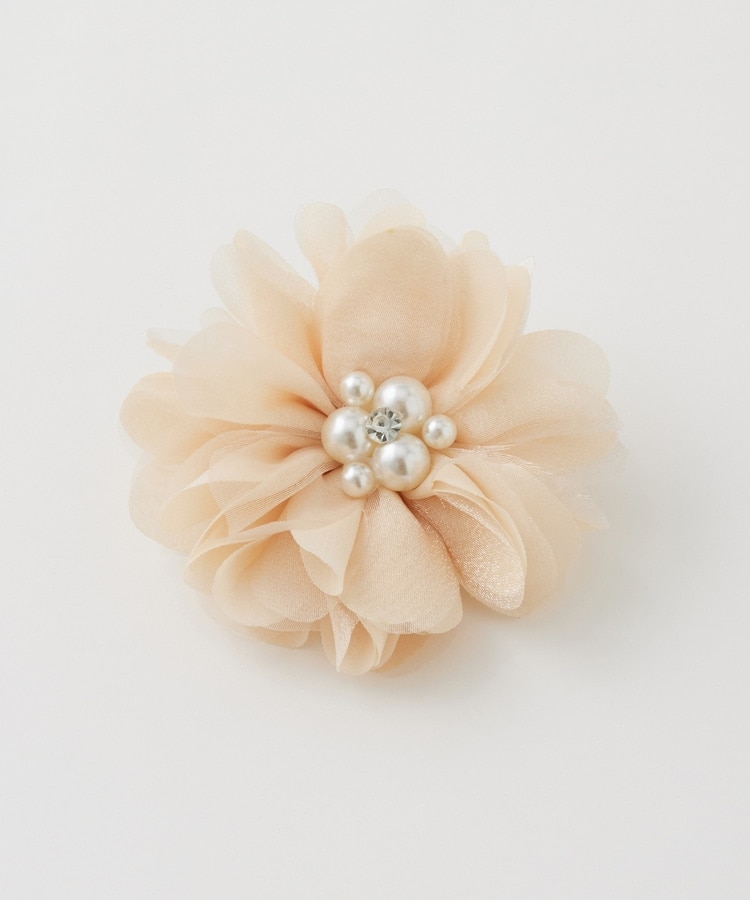 ふんわりとした花びらを重ねた女性らしさ溢れるコサージュ。