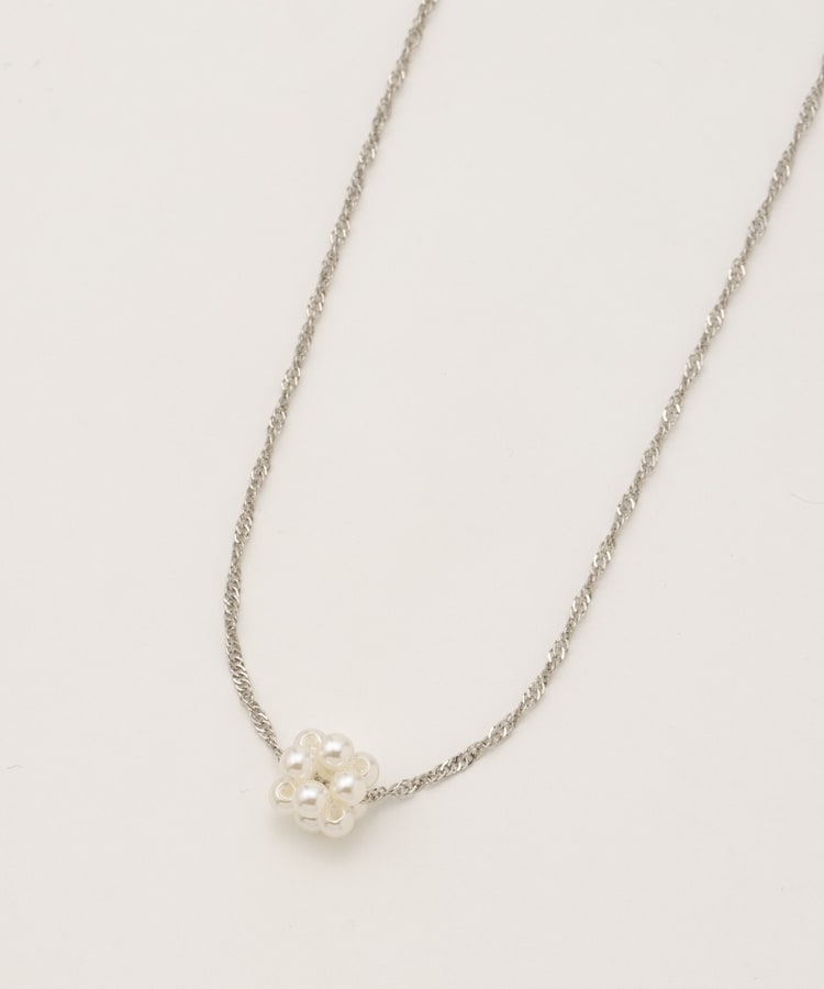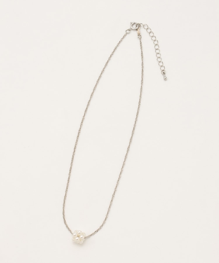 ネックレスは華奢なチェーンと小粒のパール風ビーズを集めたモチーフの上品で華やかなデザイン。