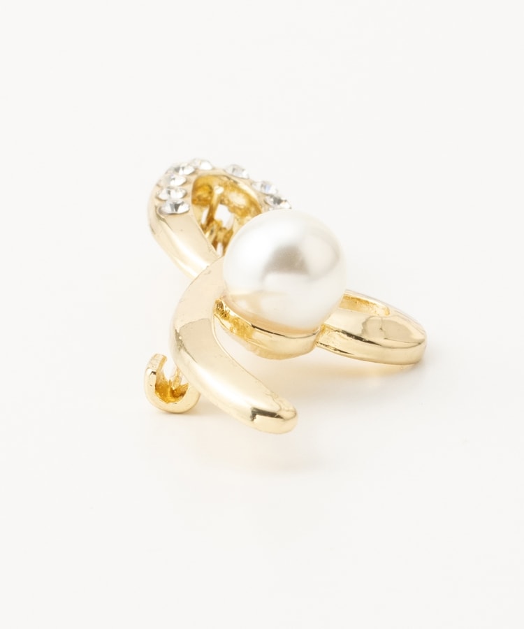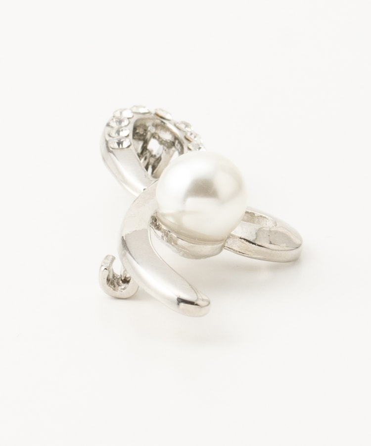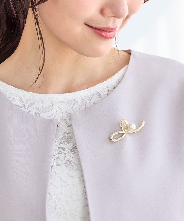 高見えする大粒のフェイクパールときらめくビジューがアクセント。