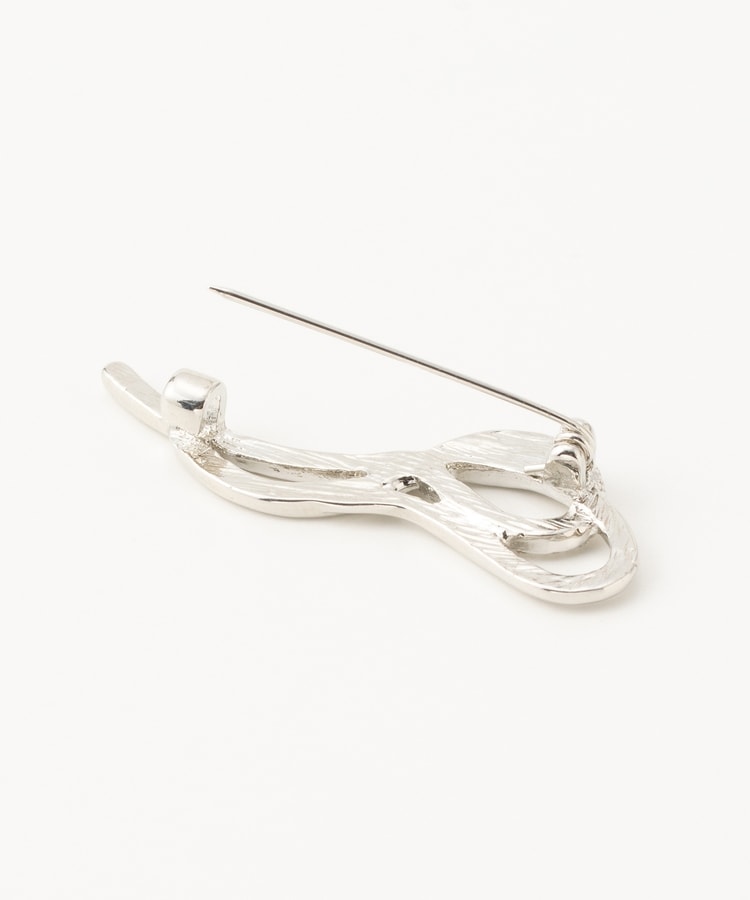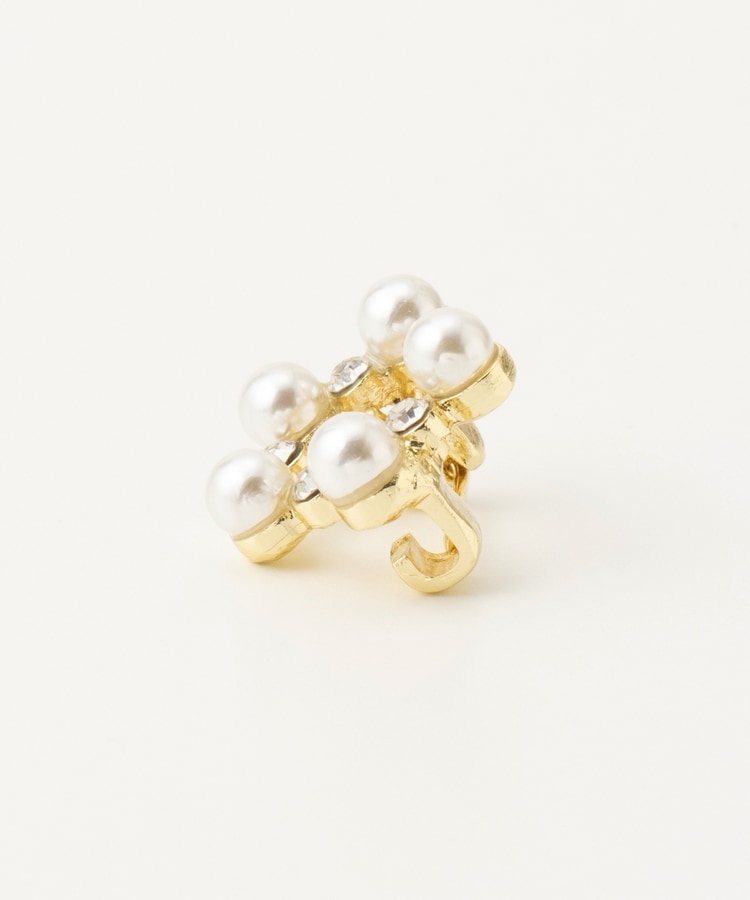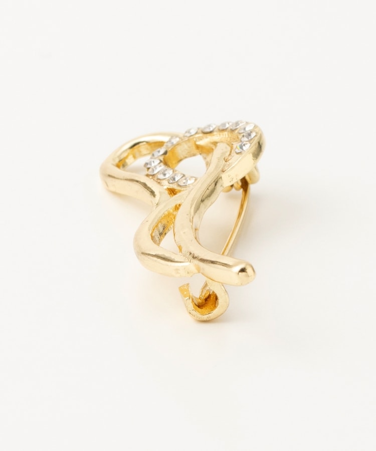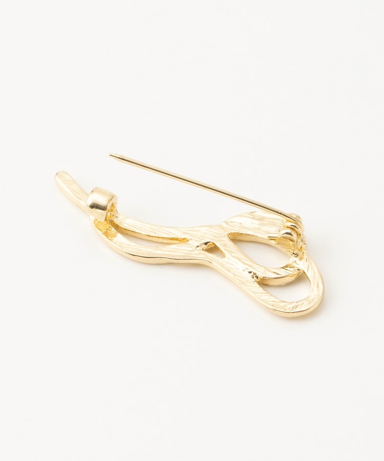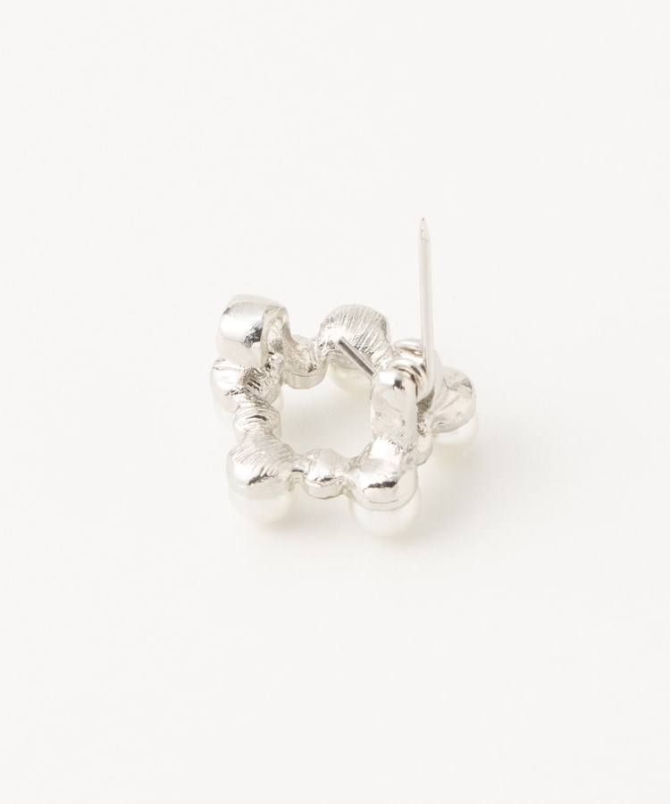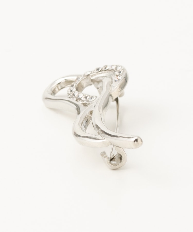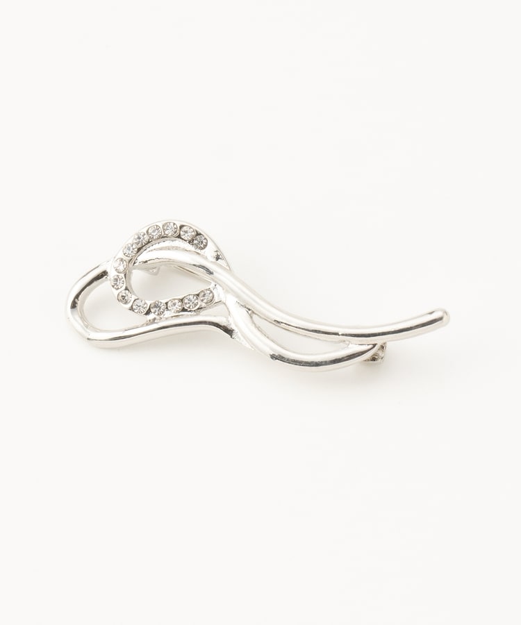 フェイクパールとビジューの丸型ブローチと、カーブラインにビジューを添えたブローチの2点セット。