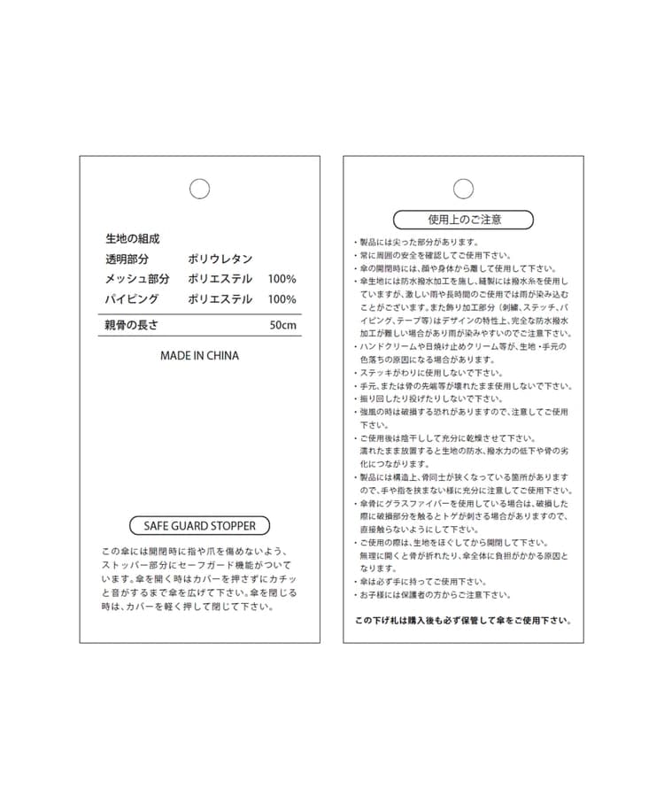 ●品質/生地 透明部分:ポリウレタン・メッシュ部分:ポリエステル 100%・パイピング:ポリエステル 100%・ハンドル素材 中棒一体型 マットプラスチック