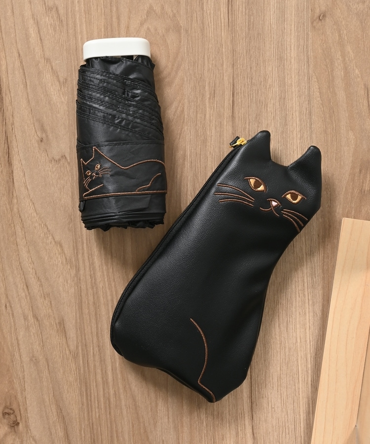 ファスナー引き手のしっぽがキュートなネコ型ポーチ付き。