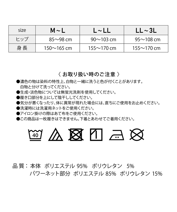 ●品質/本体 ポリエステル 95%・ポリウレタン 5%・パワーネット部分 ポリエステル 85%・ポリウレタン 15%